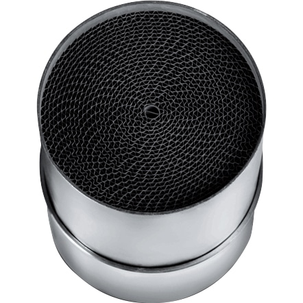 Der Akrapovic Einschub-Katalysator P-KAT-063 ist ein Drei-Wege-Katalysator. Er wandelt Kohlenmonoxid (CO) in Kohlendioxid (CO2), unverbrannte Kohlenwasserstoffe (HC) in Wasser (H2O) und Kohlendioxid (CO2) sowie Stickoxide (NOx) in Stickstoff (N2) und Sauerstoff (O2) um.
