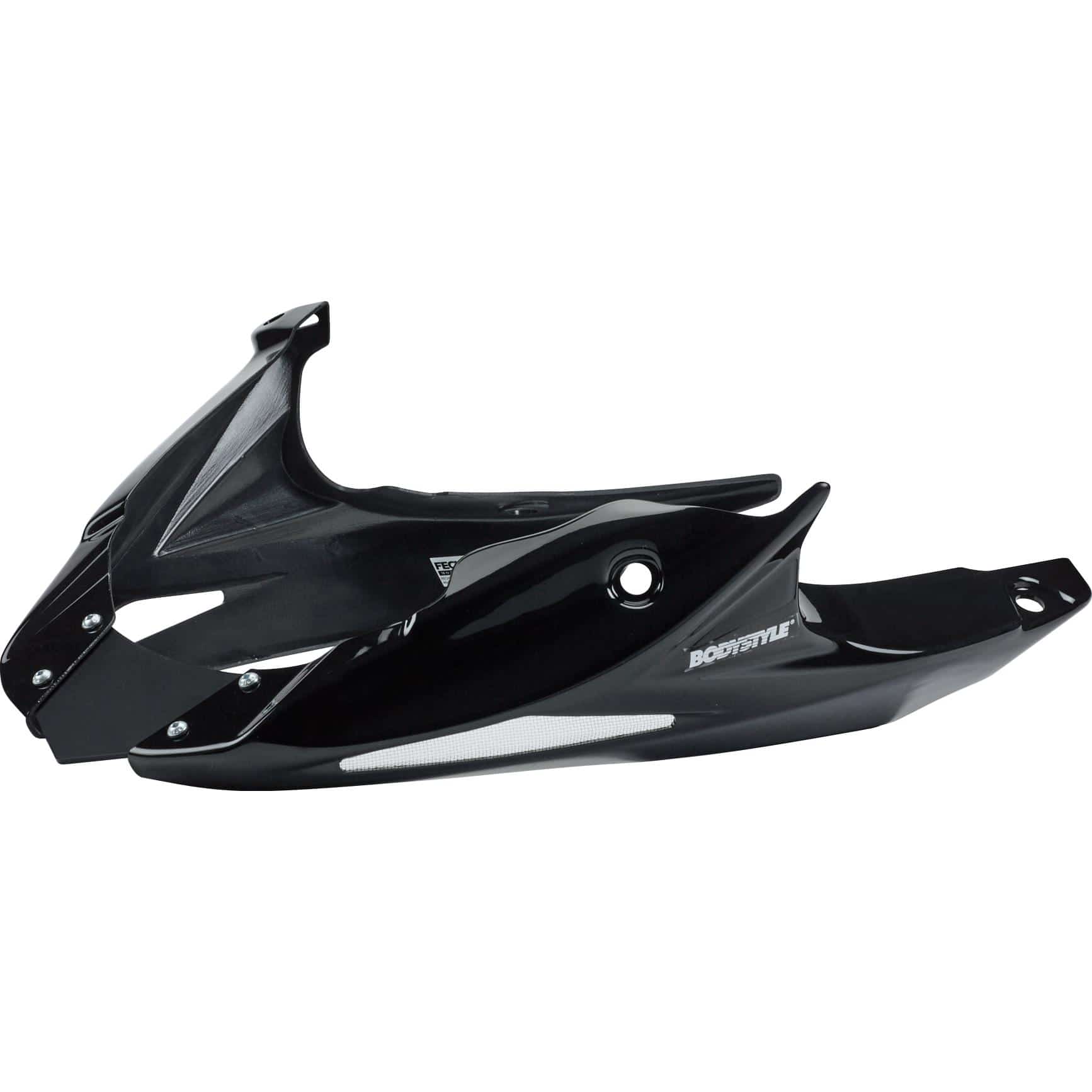 Die exakte Passform des Bodystyle Bugspoilers ist entscheidend für eine einfache Montage und eine perfekte Integration in das Gesamtdesign Ihrer Honda CB 1000 R SC60. Hergestellt aus strapazierfähigem Material, das den Anforderungen des Motorradbetriebs standhält, garantiert dieser Bugspoiler Langlebigkeit und eine ansprechende Optik über lange Zeit. Die schwarze Lackierung ist sorgfältig aufgetragen und harmoniert optimal mit der Serienausstattung oder anderen schwarzen Anbauteilen.