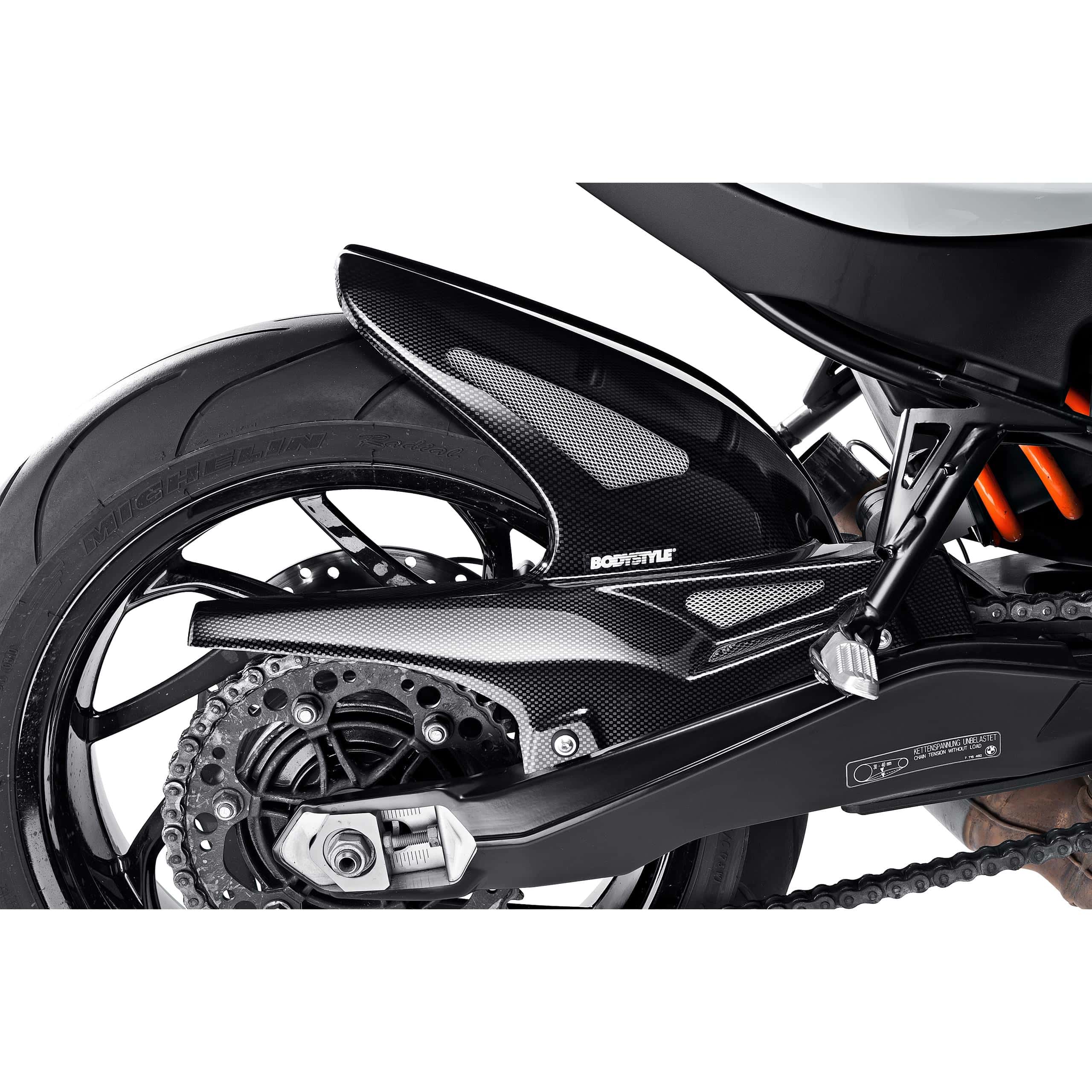 Die Bodystyle Hinterradabdeckung Raceline ist mehr als nur ein optisches Upgrade; sie erfüllt eine entscheidende Funktion für die Langlebigkeit und das Erscheinungsbild Ihres Motorrads. Durch die effektive Abdeckung des Hinterrads wird das Aufwirbeln von Schmutz, Wasser und Steinschlag auf Komponenten wie Stoßdämpfer, Federbein und Kette minimiert. Dies trägt maßgeblich zur Werterhaltung Ihres Motorrads bei und reduziert den Reinigungsaufwand erheblich.
