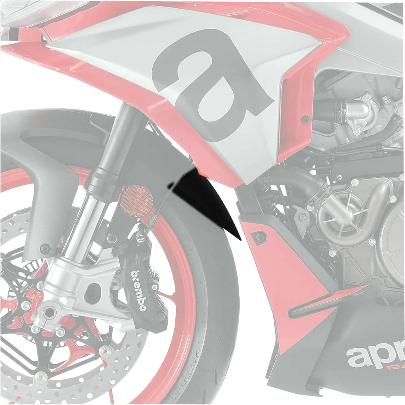 - Perfekte Integration: Die Formgebung orientiert sich eng an den Konturen des originalen Kotflügels und der Frontpartie der RS und Tuono 660, was ein harmonisches Gesamtbild ergibt.