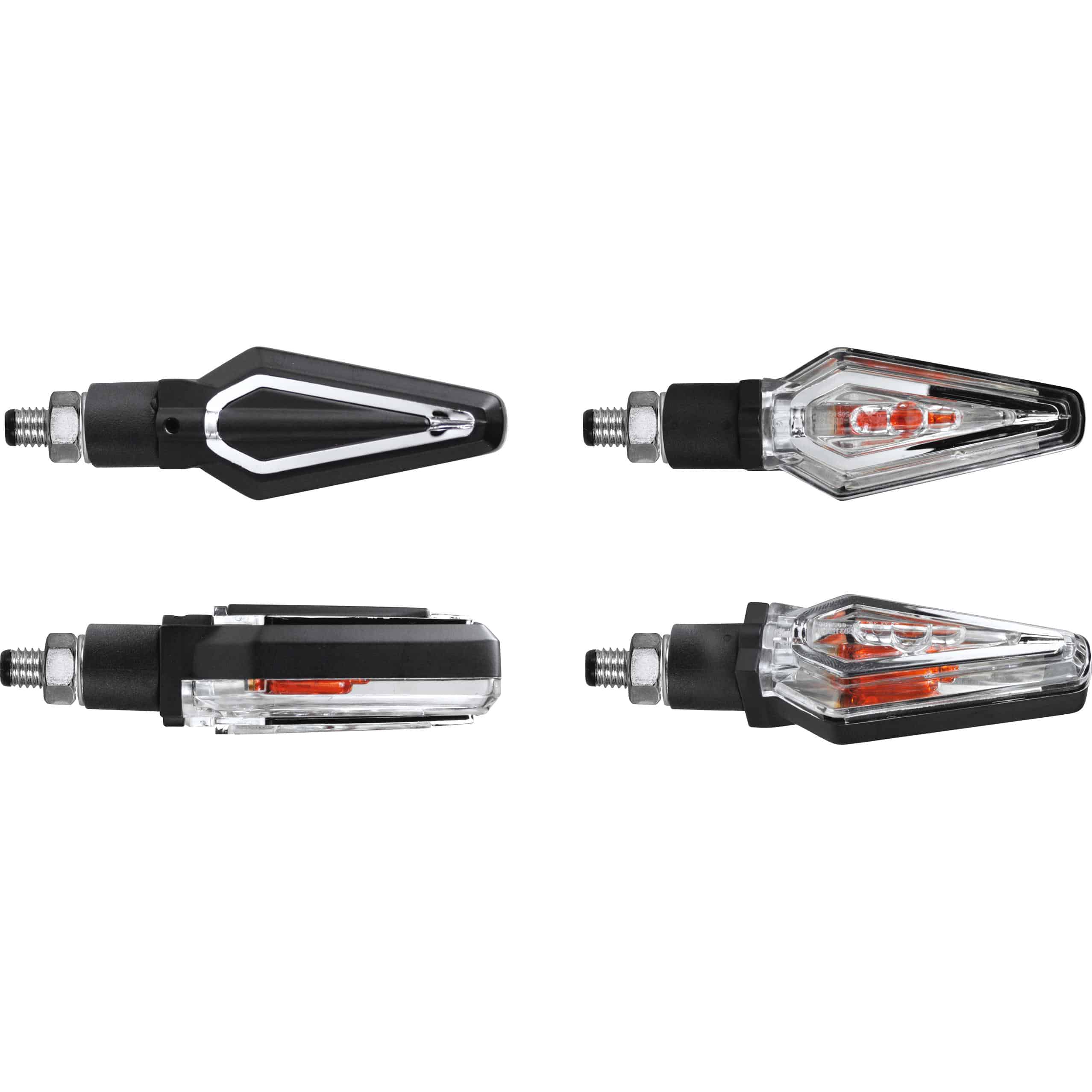 | Installation | Das M8 Gewinde erlaubt eine direkte Verschraubung an vielen vorhandenen Blinkermontagepunkten. Ein Anschluss an die 12V-Bordelektrik ist erforderlich. Eventuell benötigte Lastwiderstände zur Anpassung der Blinkfrequenz sind separat erhältlich. |