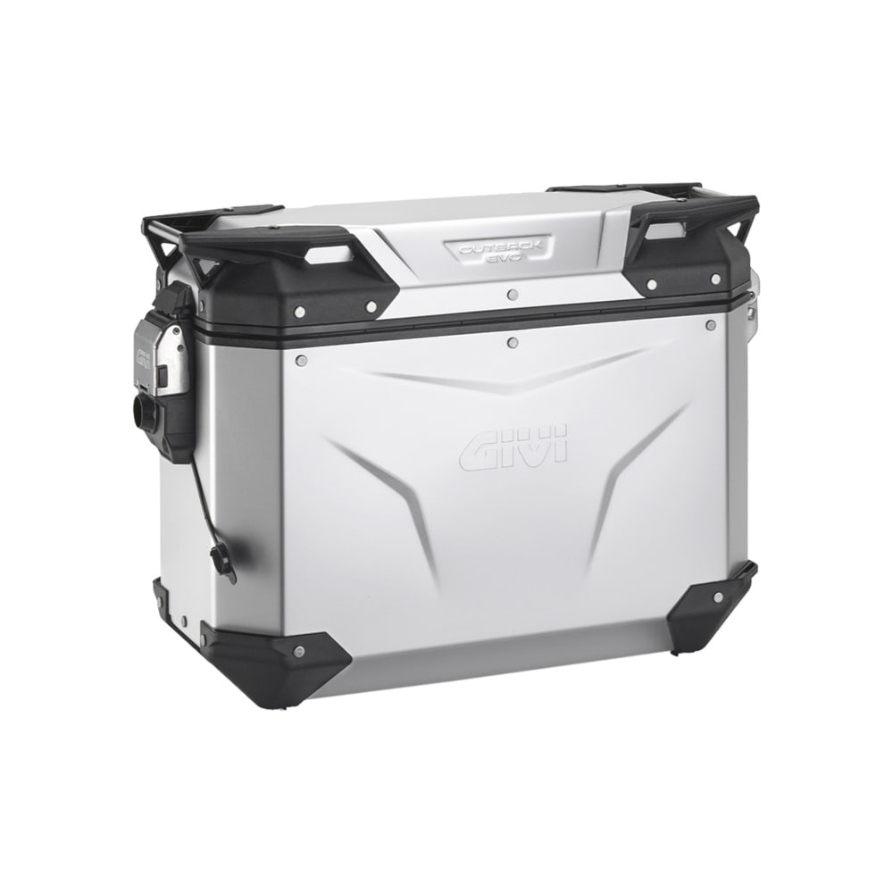 Die Outback Evo-Serie von Givi zeichnet sich durch ein funktionales und zugleich ästhetisch ansprechendes Design aus. Die klaren Linien und die robuste Aluminiumoberfläche verleihen dem Motorrad einen charaktervollen und reisebereiten Look. Die Details, wie die verdeckten Nieten und die formschönen Griffe, spiegeln die hohe Fertigungsqualität wider. Die Innenaufteilung ist funktional gestaltet, um die Organisation Ihres Gepäcks zu erleichtern. Reflektierende Elemente sind dezent integriert, um die Sichtbarkeit im Straßenverkehr zu erhöhen.