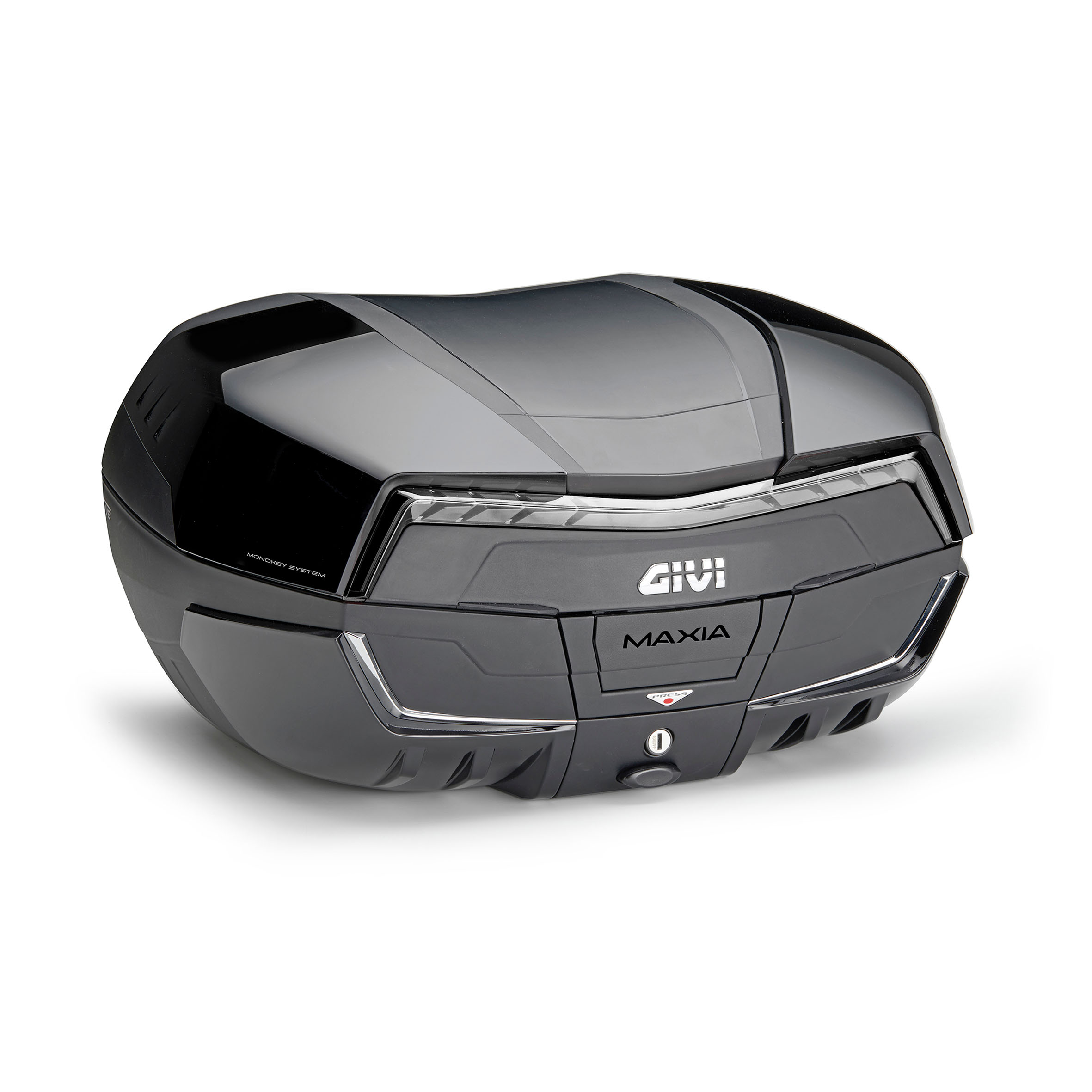 Das Givi Monokey® Topcase Maxia 5 V58NNTB V58NNTB besticht durch sein markantes und modernes Design. Die Kombination aus der tiefschwarzen Grundfarbe und dem dezent getönten Deckel verleiht ihm eine luxuriöse und zugleich sportliche Ausstrahlung. Klare Linienführung und die hochwertige Verarbeitung machen es zu einem optischen Highlight auf jedem Motorrad. Ob auf einem Tourenmotorrad, einem Sporttourer oder einem Naked Bike – dieses Topcase fügt sich harmonisch in das Gesamtbild ein und unterstreicht den individuellen Stil des Fahrers.
