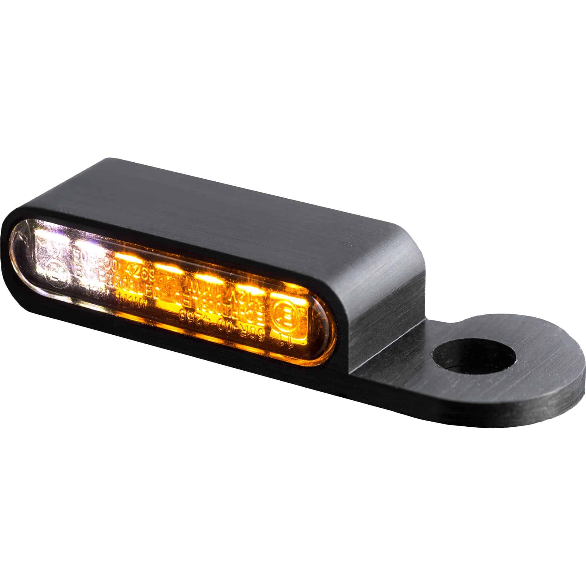 Die hier angebotene Variante ist in einem eleganten Schwarz gehalten. Die Farbe des austretenden Lichts ist je nach Gesetzgebung und Ausführung des Blinkers vorgeschrieben (z.B. gelb für Blinker). Das Positionslicht kann ebenfalls eine spezifische Farbe haben.