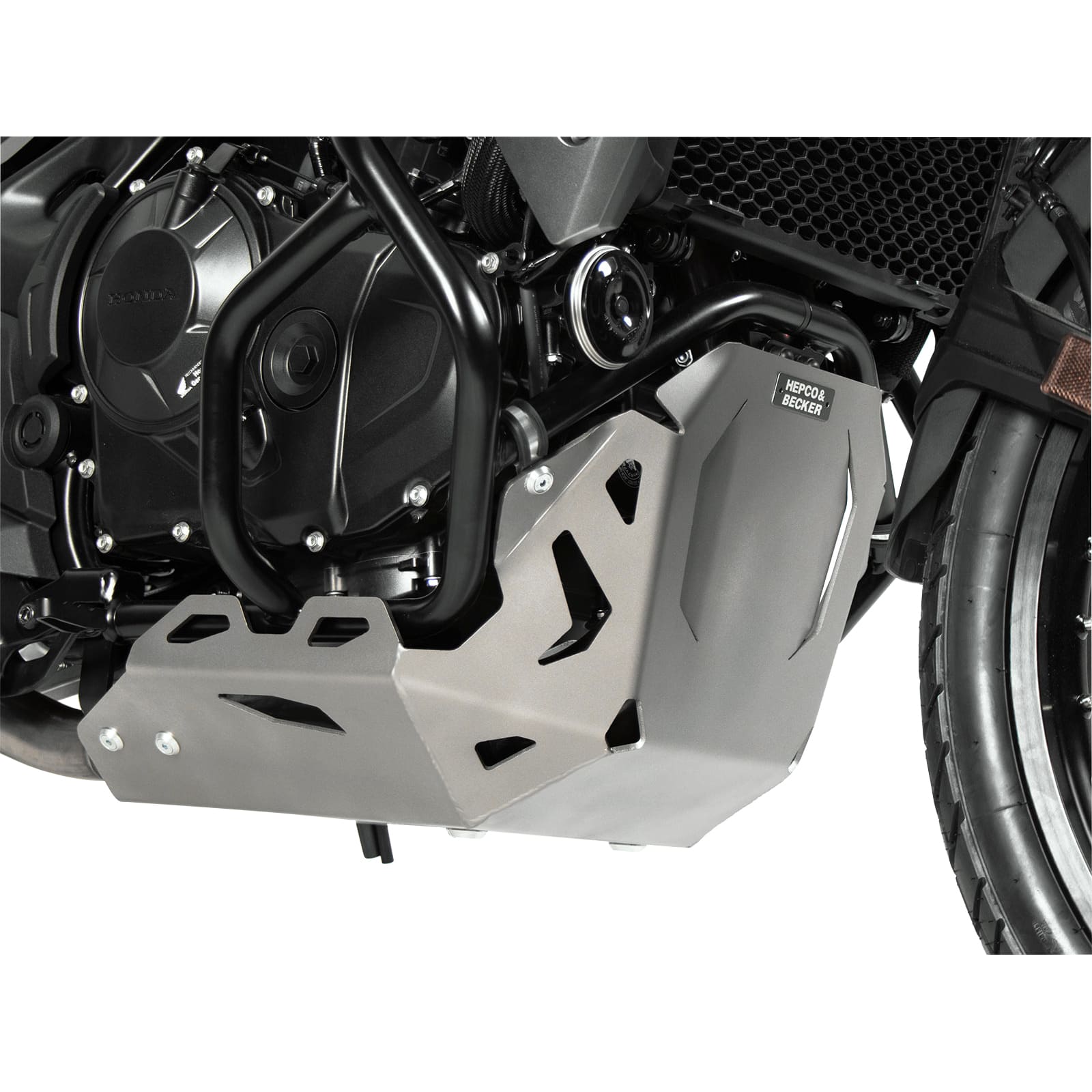 Der Hepco & Becker Alu Motorschutz für die Honda XL 750 Transalp 2023-2024 schützt primär den Motorblock, das Getriebe, den Ölfilter sowie angrenzende empfindliche Komponenten vor direkten Aufprallschäden durch Steine, Äste, Schmutz, Kies und andere Fremdkörper, die auf der Straße oder im Gelände aufgewirbelt werden können. Dies minimiert das Risiko von Lecks, Brüchen oder Funktionsstörungen.