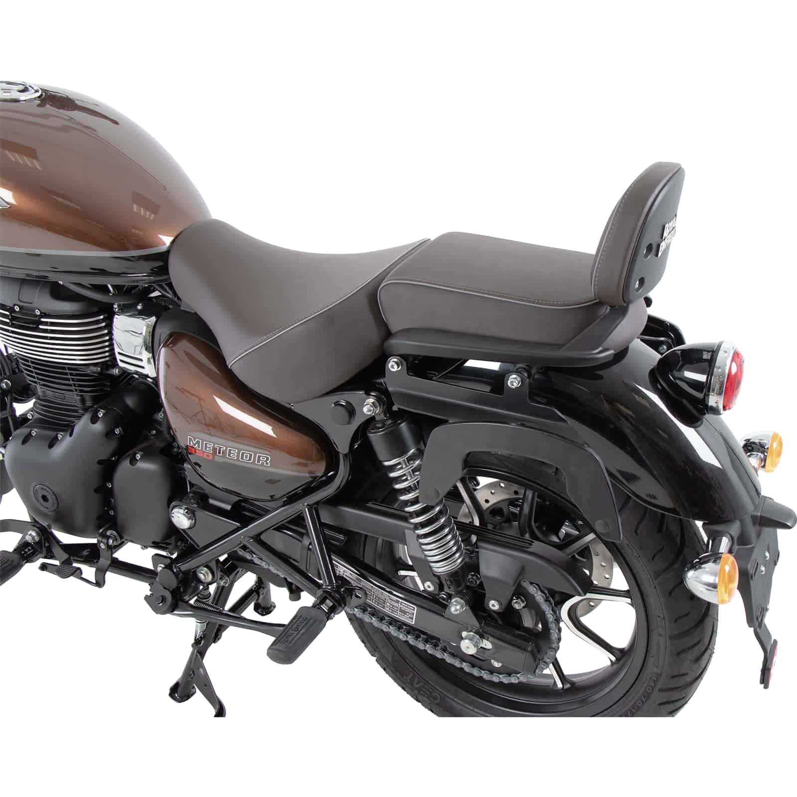 - Optimale Integration ins Motorrad-Design: Die schlanke Bauweise und die schwarze Pulverbeschichtung fügen sich harmonisch in das Erscheinungsbild der Royal Enfield Meteor 3 ein und beeinträchtigen die Fahrdynamik nicht.