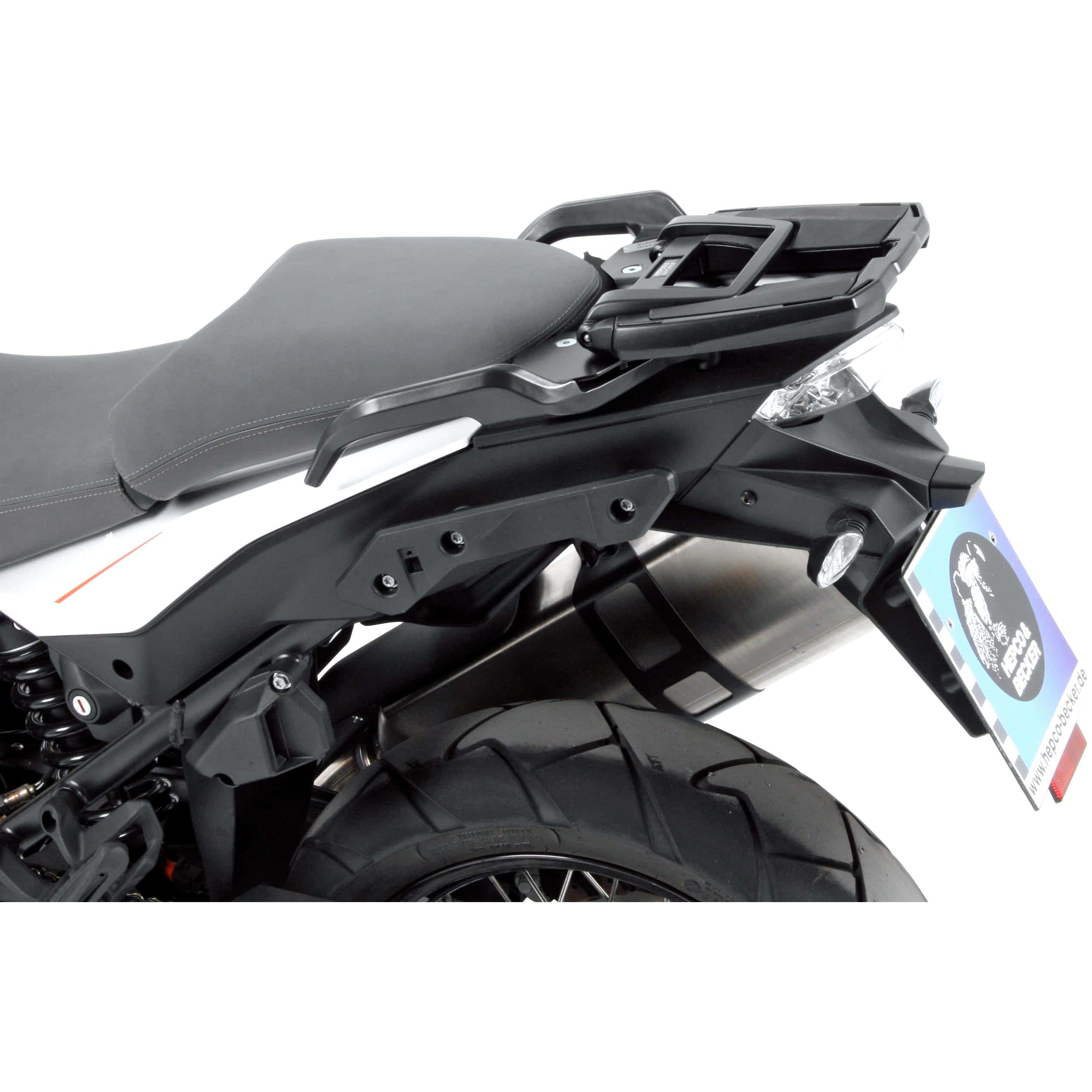 | Befestigungssystem | Integriertes Klick-System für Hepco & Becker Topcases, zusätzliche Befestigungspunkte für Spanngurte und Gepäcknetze. |