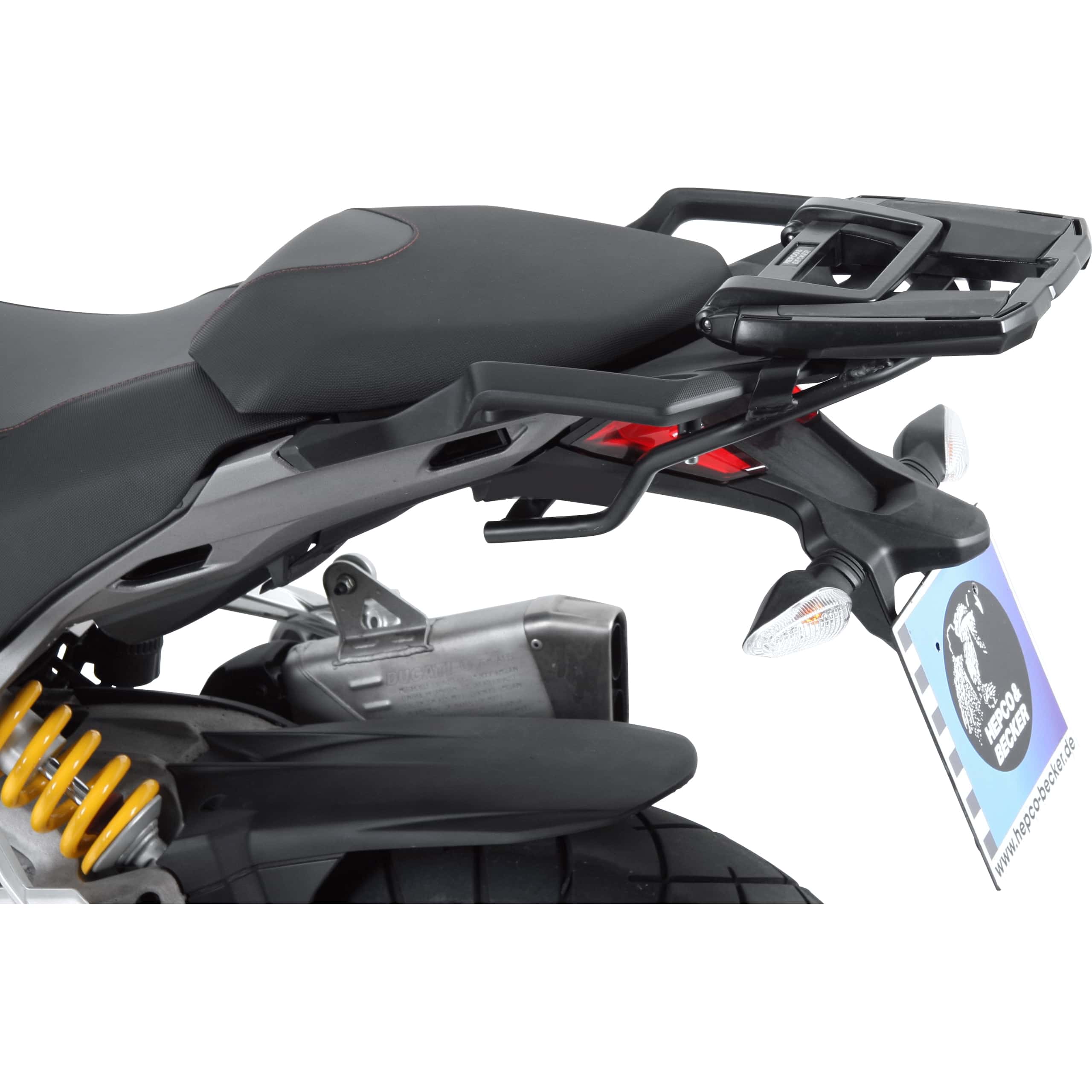 - Erweiterte Ladeoptionen: Bietet eine stabile Plattform zur Befestigung einer breiten Palette von Hepco & Becker Topcases, entweder direkt oder über die integrierten Befestigungspunkte.