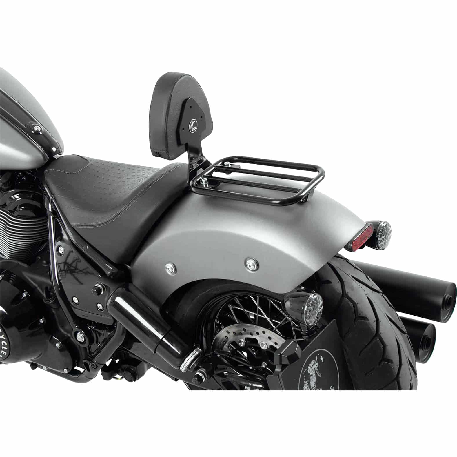 Nein, das Design der Hepco & Becker nmS Rückenlehne ist bewusst schlank und unaufdringlich gehalten. Die schwarze Farbe und die klare Linienführung fügen sich harmonisch in das Erscheinungsbild der Indian Chief und Bobber Dark ein, insbesondere in den Dark-Varianten, und unterstreichen die Custom-Optik, anstatt sie zu stören.