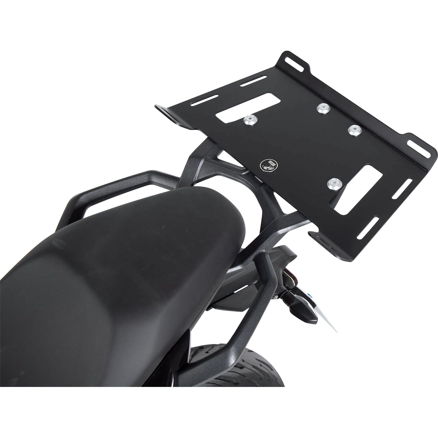 | Design-Merkmale | Erweiterte Auflagefläche, integrierte Befestigungspunkte für zusätzliche Spanngurte, dezente Formgebung, die die Linienführung des Motorrads ergänzt. Die flache Konstruktion minimiert das Risiko von Beschädigungen an Gepäckstücken. |