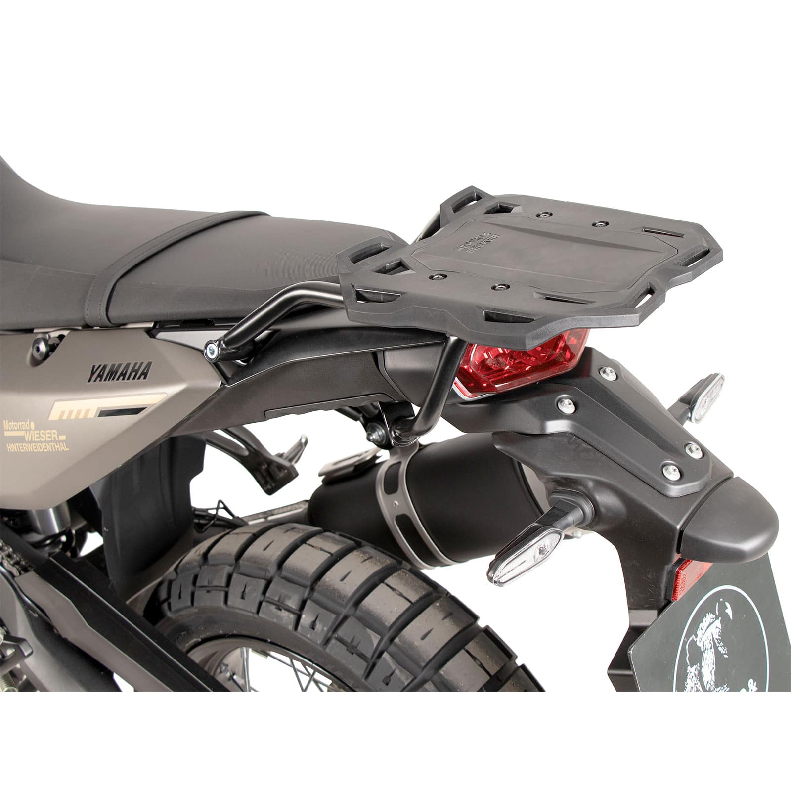 Hepco & Becker legt großen Wert darauf, dass ihre Produkte nicht nur funktional, sondern auch ästhetisch überzeugen. Der Smartrack Gepäckträger ist so konzipiert, dass er sich harmonisch in die Linienführung der Yamaha Tenere 700 einfügt. Die schwarze Pulverbeschichtung unterstreicht die maskuline und abenteuerlustige Ästhetik des Motorrads, ohne aufdringlich zu wirken. Die Konstruktion ist darauf ausgelegt, die ursprüngliche Fahrzeuggeometrie optimal zu ergänzen und eine hohe Bodenfreiheit zu gewährleisten, was besonders im Gelände von Vorteil ist.