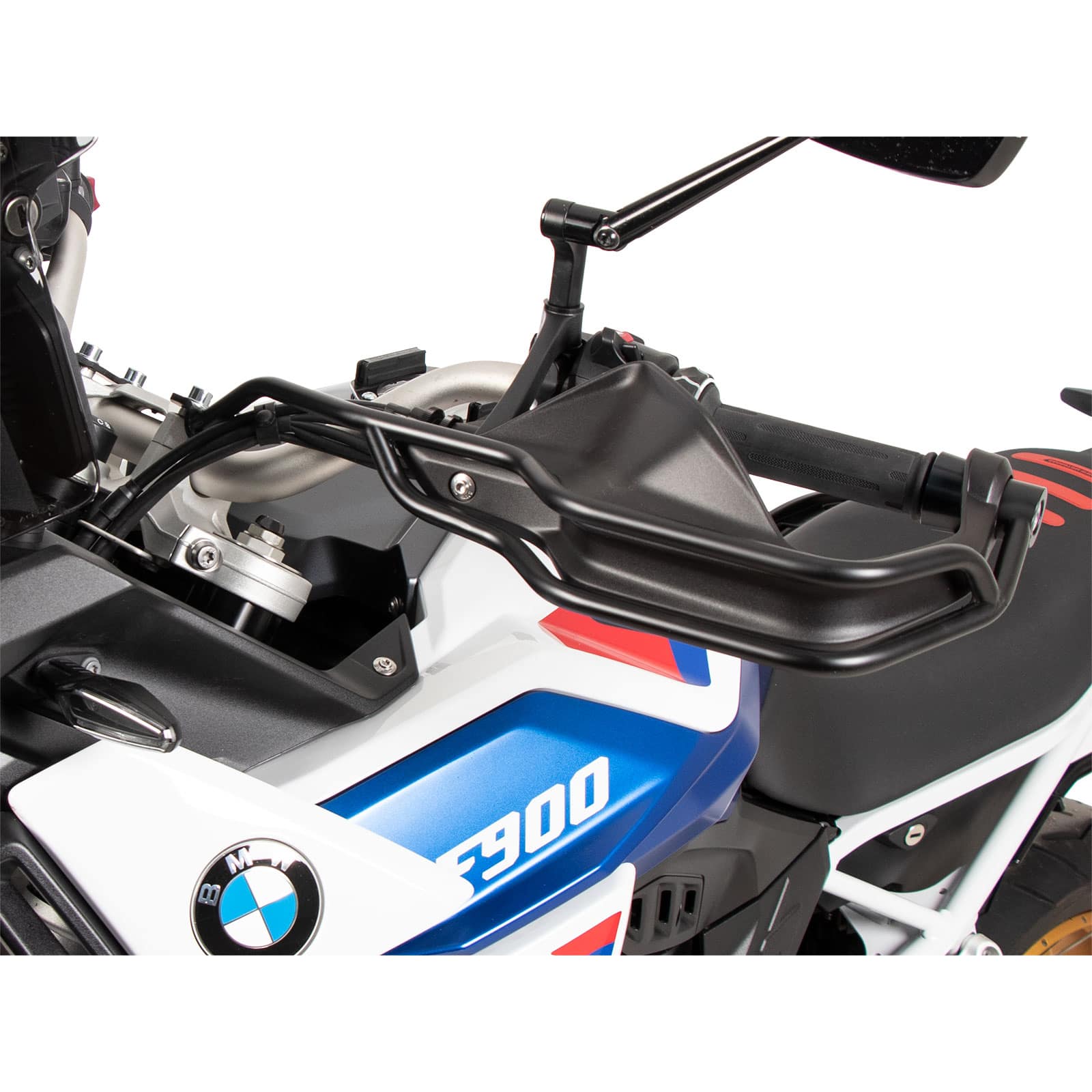 Die Kompatibilität mit anderen Zubehörteilen, wie beispielsweise zusätzlichen Handguards oder anderen Spiegeln, kann variieren. Die Hepco & Becker Griffschutzbügel sind für die serienmäßigen Armaturen und Anbauteile der BMW F 900 GS ausgelegt. Falls Sie alternative Teile verbaut haben, empfehlen wir eine sorgfältige Prüfung der Montagepunkte und des verfügbaren Platzes oder eine Nachfrage bei unserem Kundenservice, um mögliche Konflikte auszuschließen.