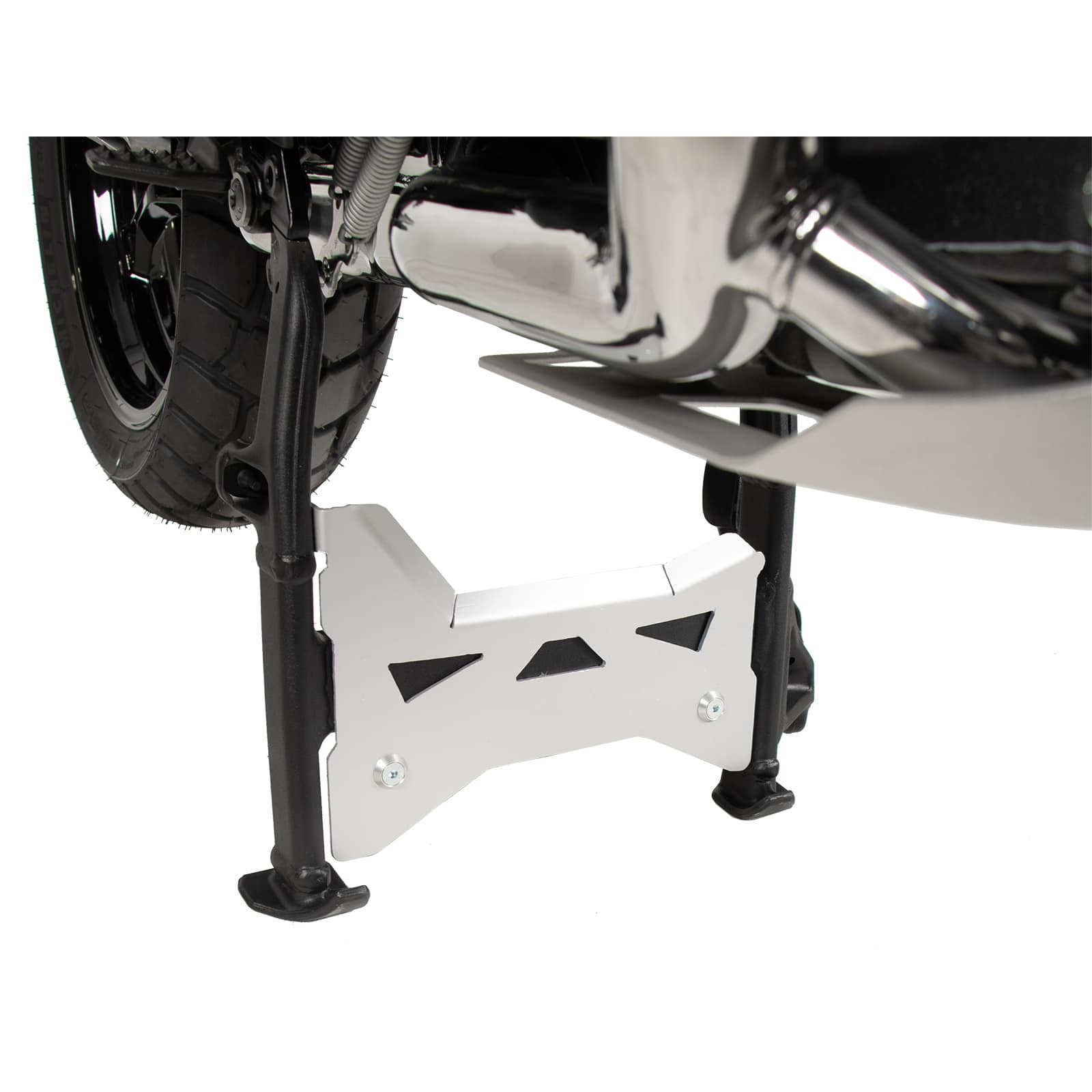 Das Design des Hepco & Becker Hauptständerschutzes ist darauf ausgelegt, die Bodenfreiheit des Motorrads so wenig wie möglich zu beeinträchtigen. Die Konstruktion ist so gewählt, dass sie sich harmonisch in die Formgebung des Hauptständers integriert und keine unnötigen Einschränkungen mit sich bringt.