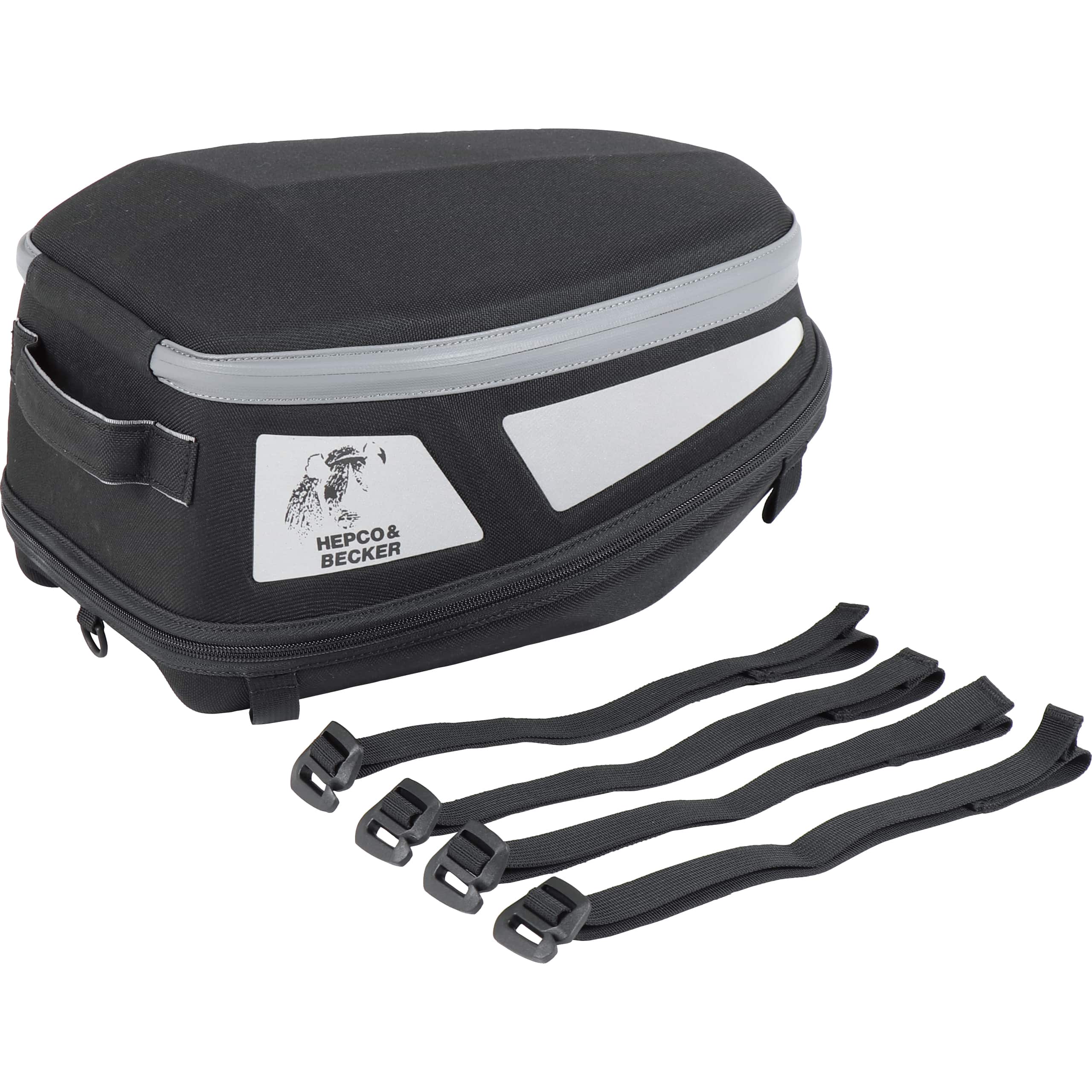 Das Befestigungssystem von Hepco & Becker ist für seine Zuverlässigkeit bekannt. Die Hecktasche wird mit robusten Spanngurten ausgestattet, die eine universelle Anwendung auf nahezu jedem Gepäckträger, Soziussitz oder sogar auf speziellen Hecktaschenplatten ermöglichen. Die integrierten Schnallen sind leicht zu bedienen und lassen sich sicher fixieren, was ein Verrutschen der Tasche während der Fahrt nahezu ausschließt.