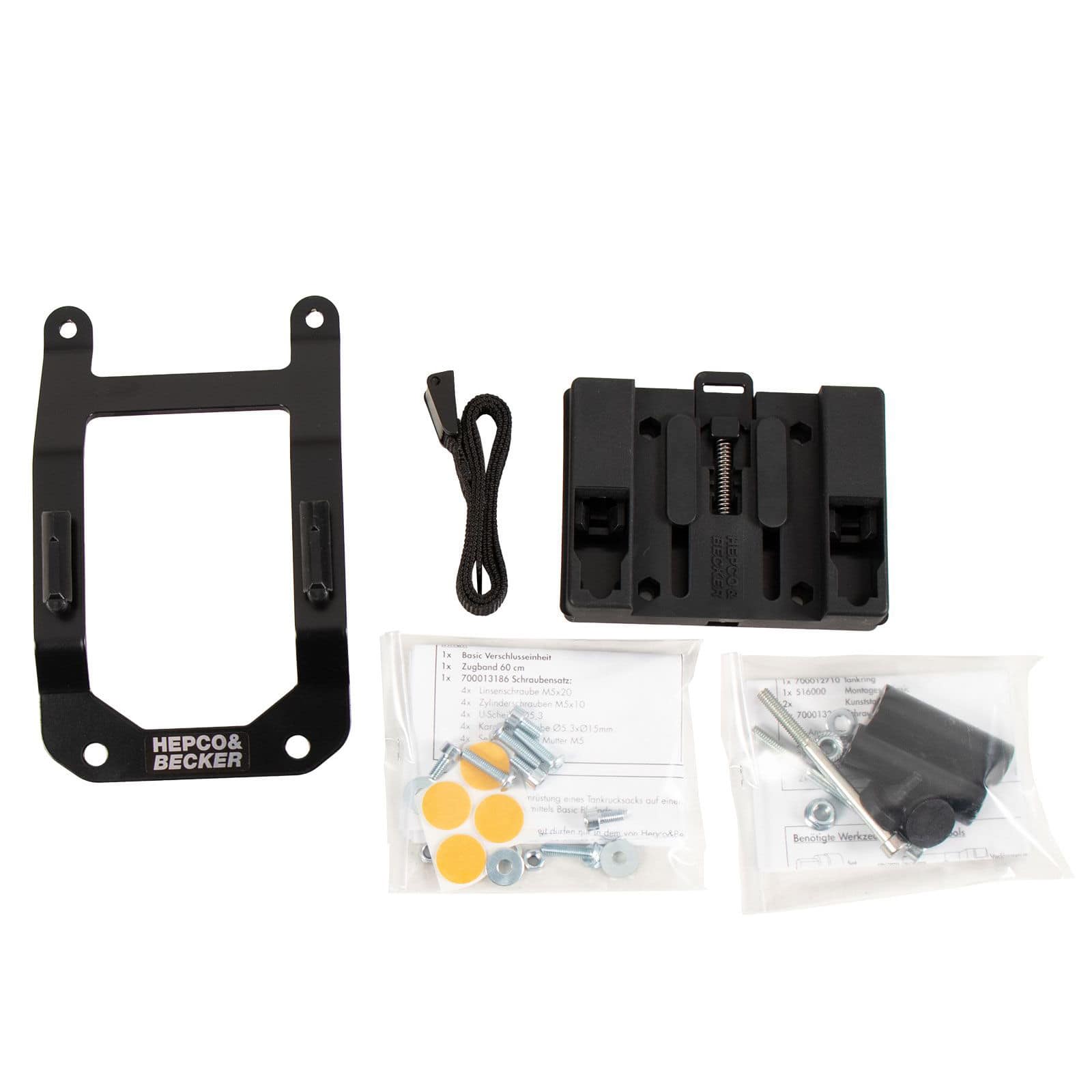 | Anwendung | Sichere und schnelle Befestigung von Hepco & Becker Tanktaschen |