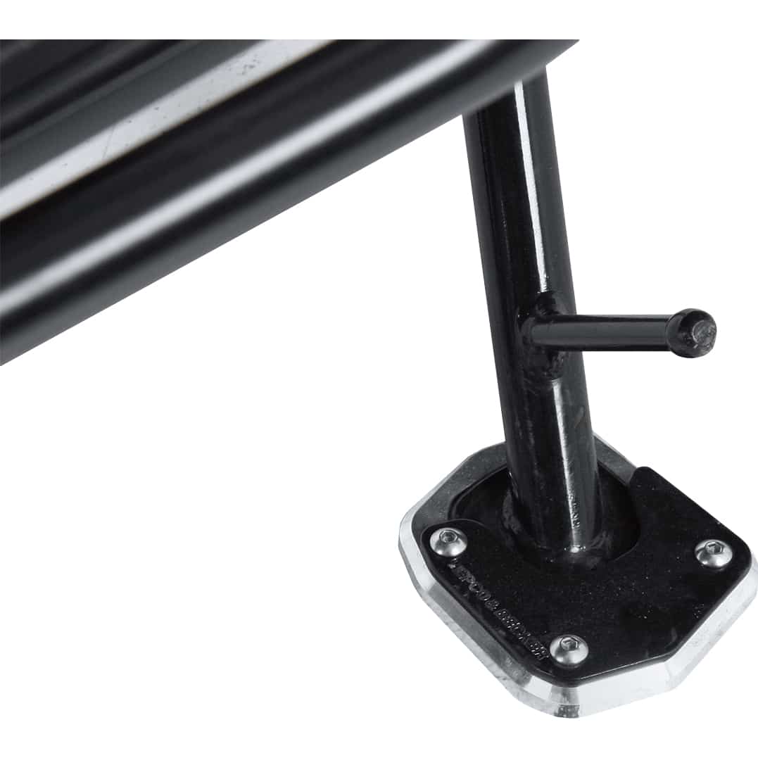 Der Hauptvorteil ist die deutlich vergrößerte Auflagefläche, die ein Einsinken des Seitenständers in weichem Untergrund verhindert und somit die Standsicherheit Ihres Motorrads erheblich verbessert.