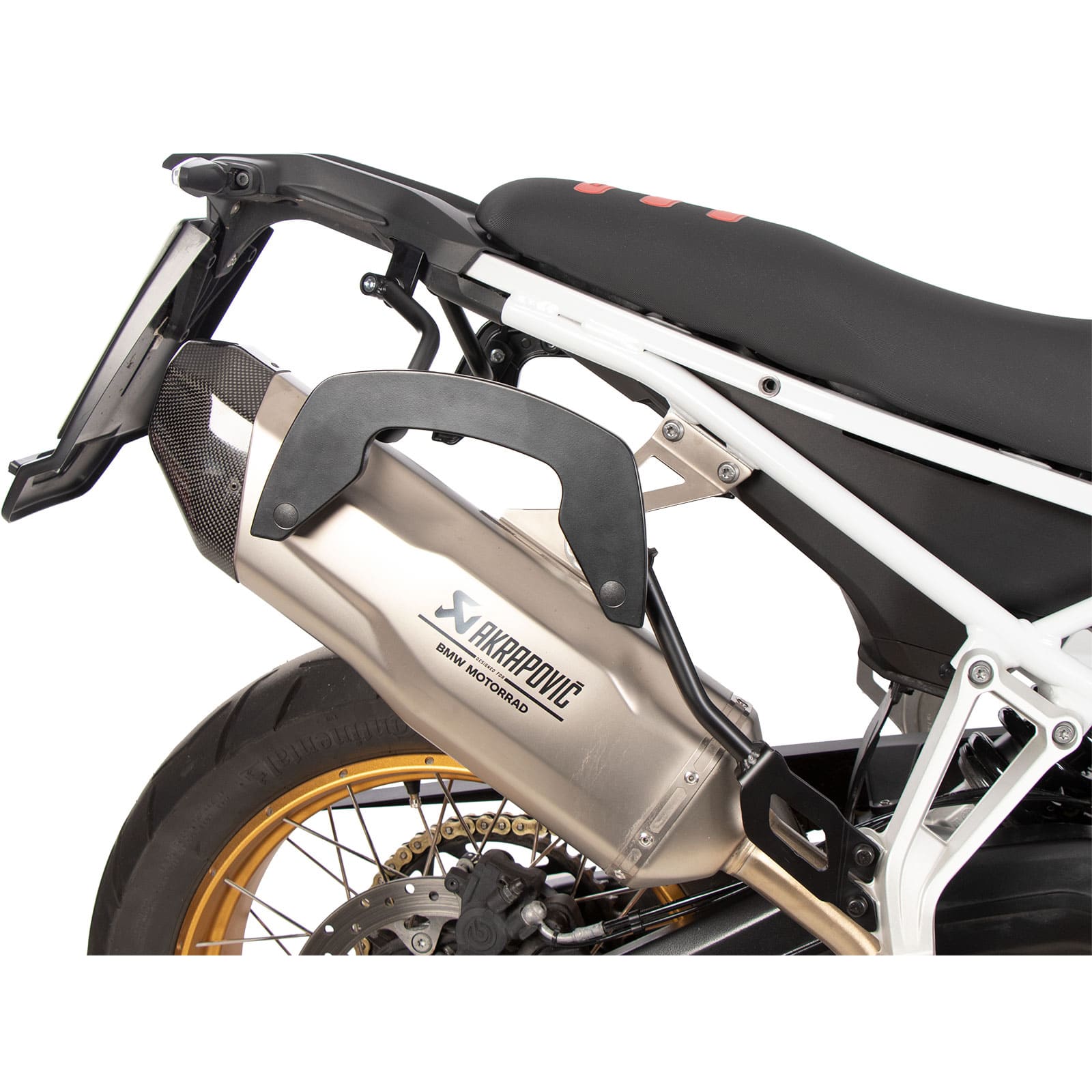 - Ästhetische Integration: Die schwarze Pulverbeschichtung fügt sich elegant in das Gesamtbild der BMW F 900 GS ein.