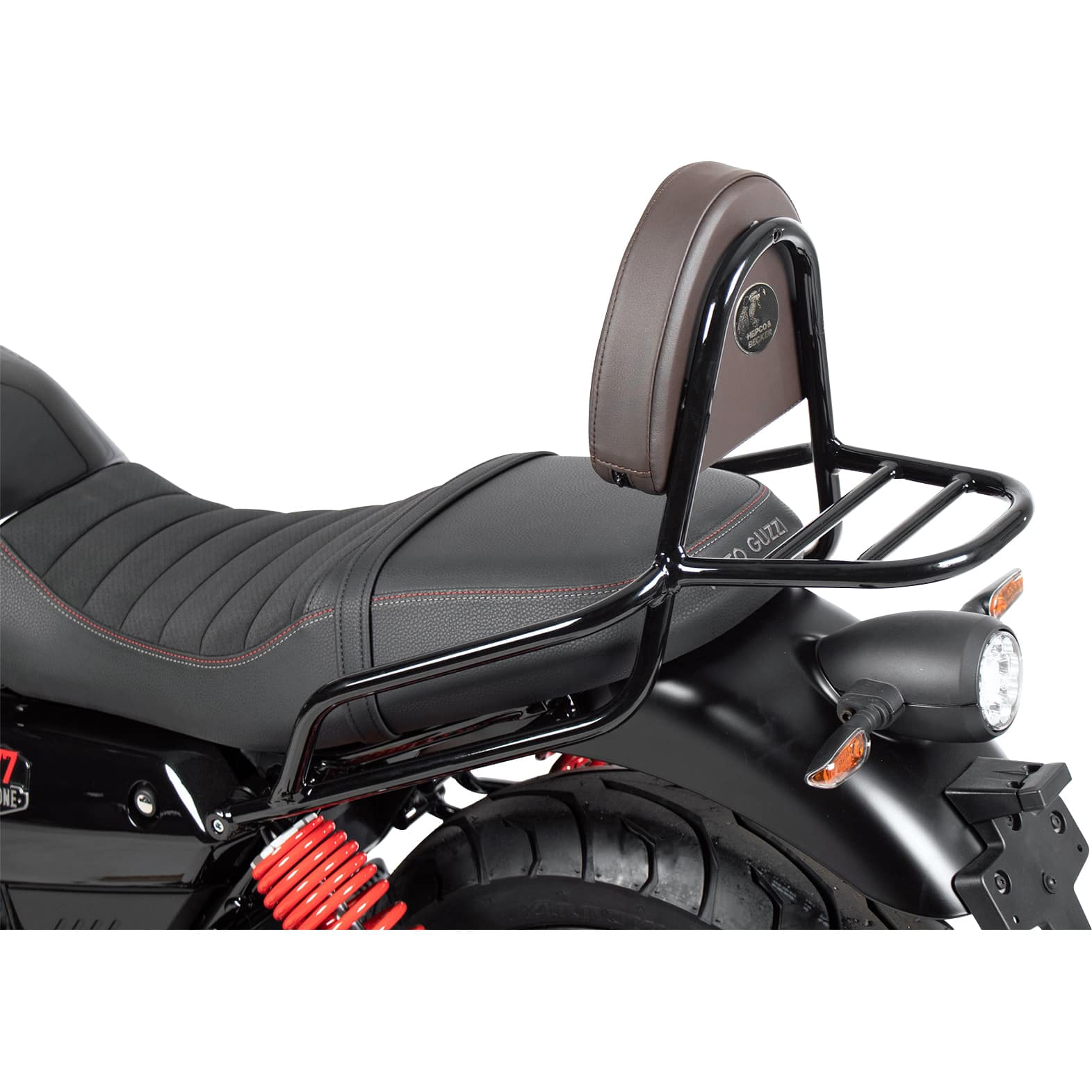 Die Hepco & Becker Sissybar mit integriertem Gepäckträger in einer edlen Kombination aus Schwarz und Braun ist die ideale Ergänzung für Ihre Moto Guzzi V7 Stone Special. Dieses hochwertige Zubehörteil vereint stilvolles Design mit praktischem Nutzen und bietet sowohl dem Sozius als auch dem Fahrer erweiterten Komfort und deutlich mehr Lademöglichkeiten für Kurztrips oder ausgedehnte Motorradreisen.
