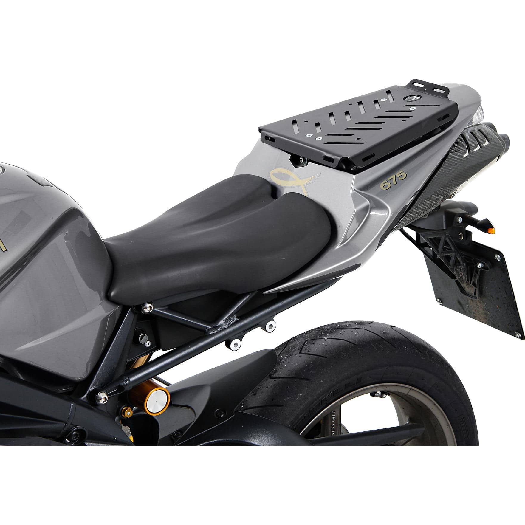 - Optimale Integration: Das Sportrack fügt sich nahtlos in das Design Ihrer Triumph Daytona 675 /R ein und bewahrt die sportliche Linienführung des Motorrads.