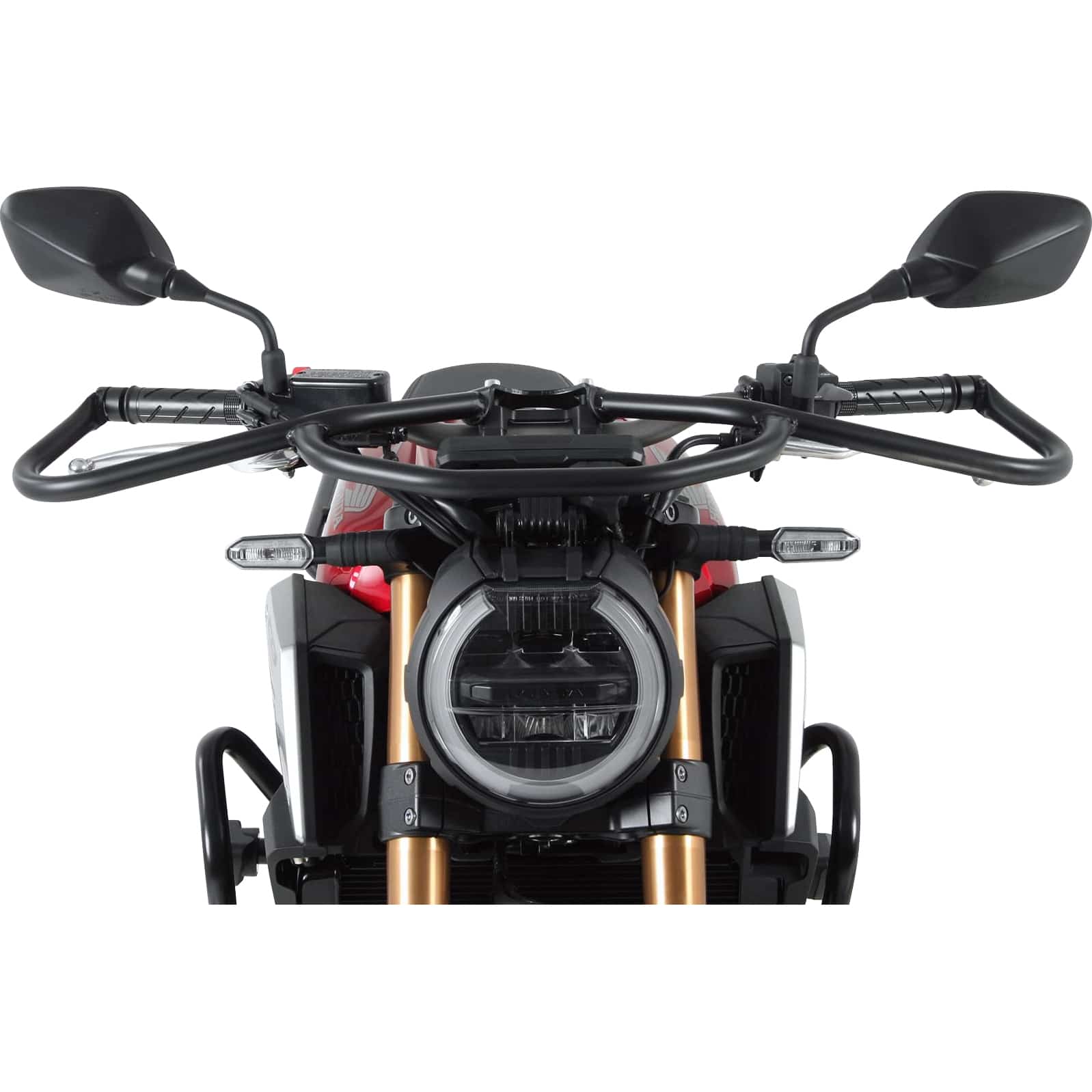 Die Sturzbügel sind in einem klassischen, mattschwarzen Finish gehalten, das sich optisch gut in das Design der Honda CB 650 R integriert.