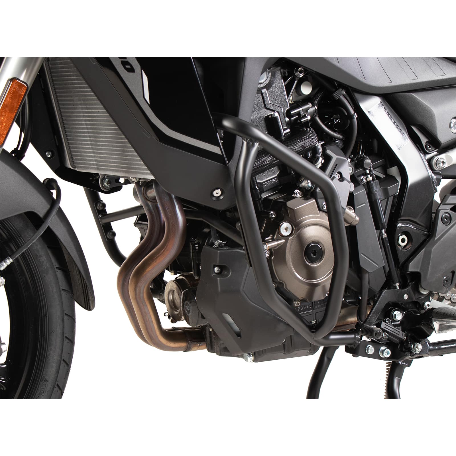 - Elegantes Design: Die schwarze Pulverbeschichtung unterstreicht den Charakter der V-Strom und fügt sich harmonisch ein.