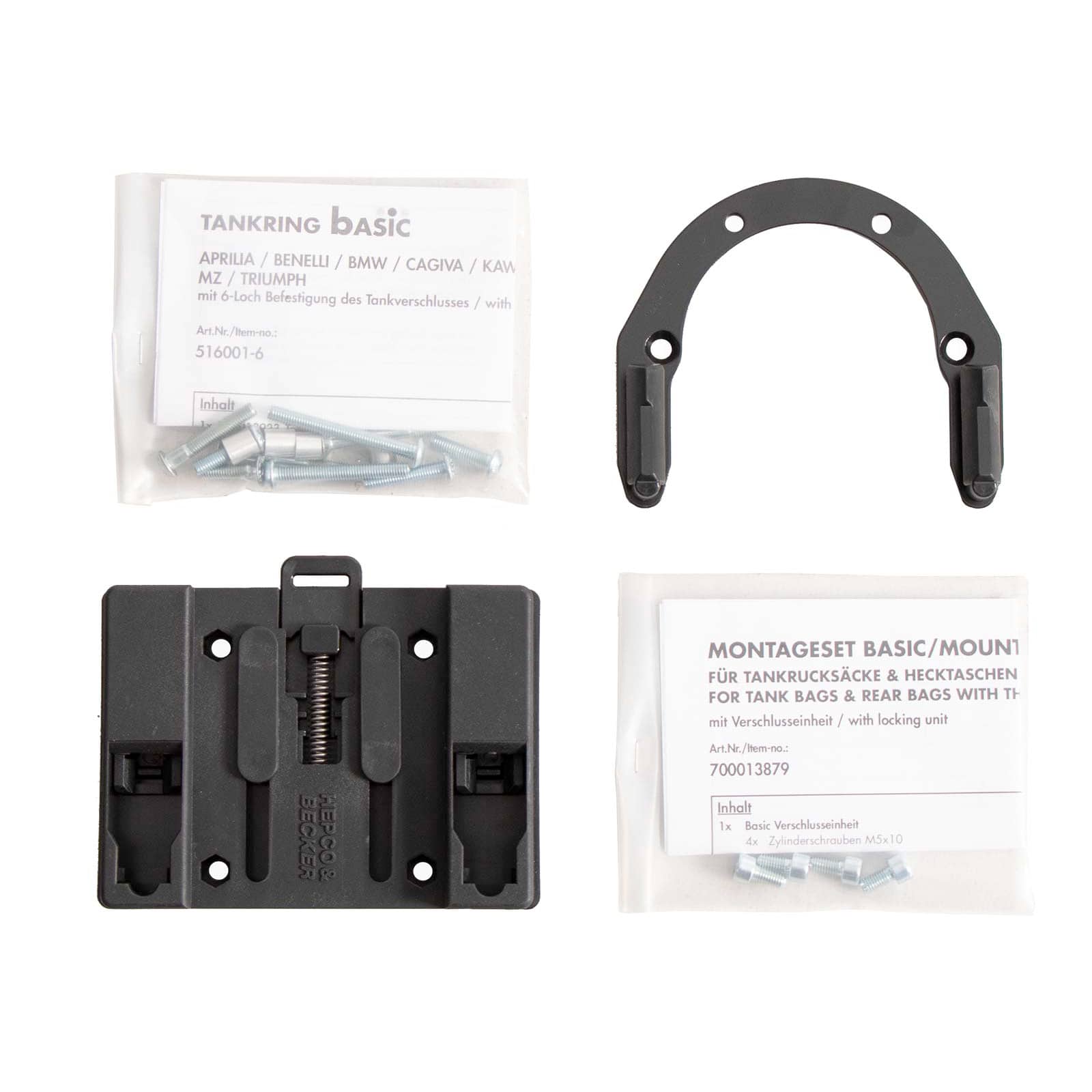 Der Hepco & Becker Tankring Lock-it Basic ist mit allen Hepco & Becker Tankrucksäcken der Lock-it Serie kompatibel. Diese Serie bietet eine breite Auswahl an Größen und Ausführungen, von kompakten Modellen für den täglichen Gebrauch bis hin zu geräumigeren Varianten für ausgedehnte Touren.