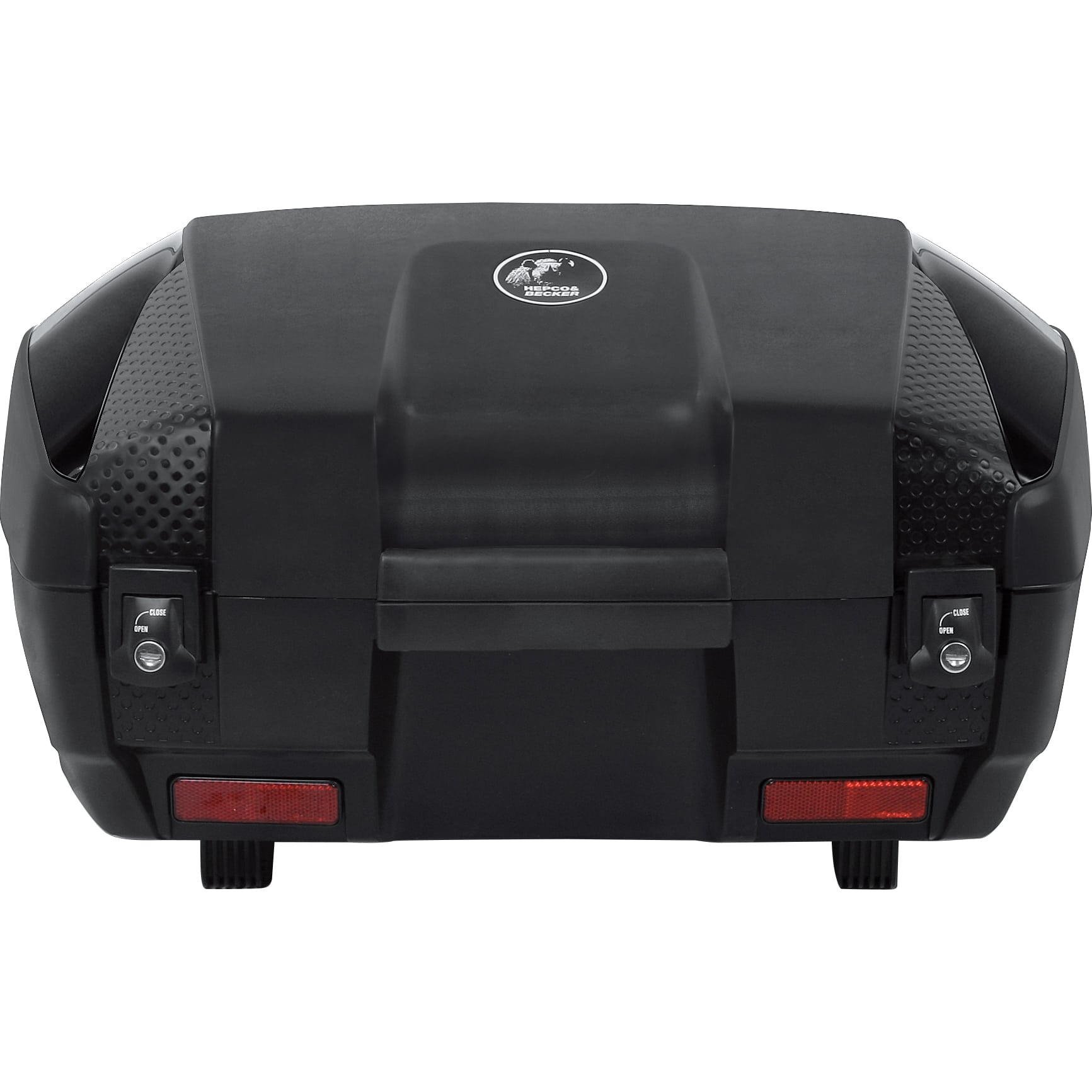 Das Topcase wird auf einer Hepco & Becker Gepäckbrücke oder einer kompatiblen Universalplatte montiert. Die Befestigung erfolgt über eine spezielle Adapterplatte, die separat erhältlich ist und je nach Motorradmodell variieren kann.