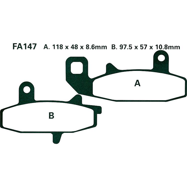 Die Abmessungen von 118/97,5 x 48/57 x 8,6/10,8 mm und die Modellbezeichnung FA147 geben die genauen Spezifikationen der Beläge an. Um die Kompatibilität mit Ihrem Motorrad zu gewährleisten, überprüfen Sie bitte die Teilenummer oder die exakten Maße Ihrer aktuell verbauten Bremsbeläge oder konsultieren Sie das Handbuch Ihres Fahrzeugs oder eine kompatible Teile-Liste.