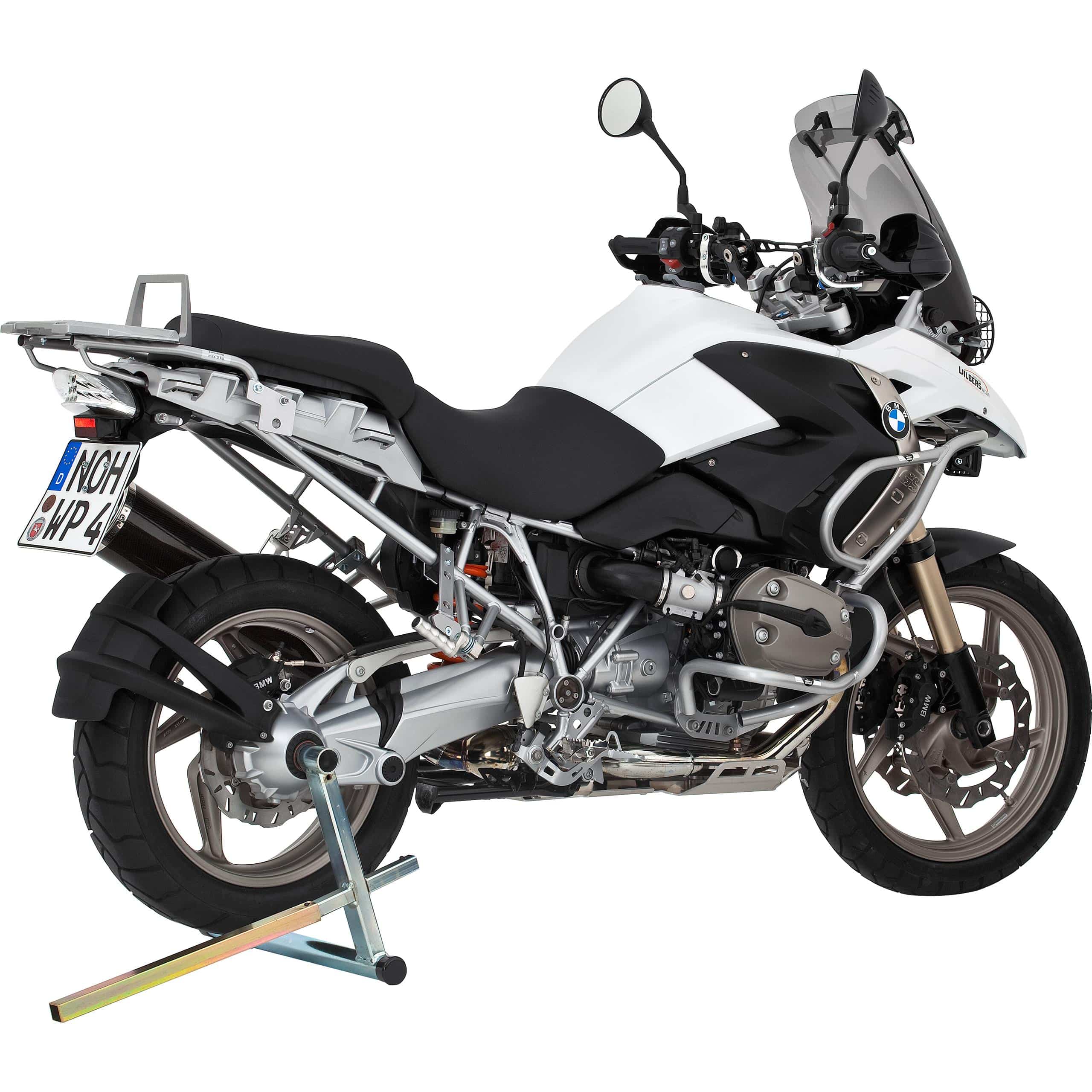 | Belastbarkeit | Ausgelegt für das Gewicht gängiger BMW Motorräder mit Einarm-Schwinge, mit einer Reserve für zusätzliche Sicherheit. Die genaue maximale Traglast ist auf dem Produktetikett oder der technischen Dokumentation des Herstellers angegeben und richtet sich nach der Auslegung des Hebelsystems. |