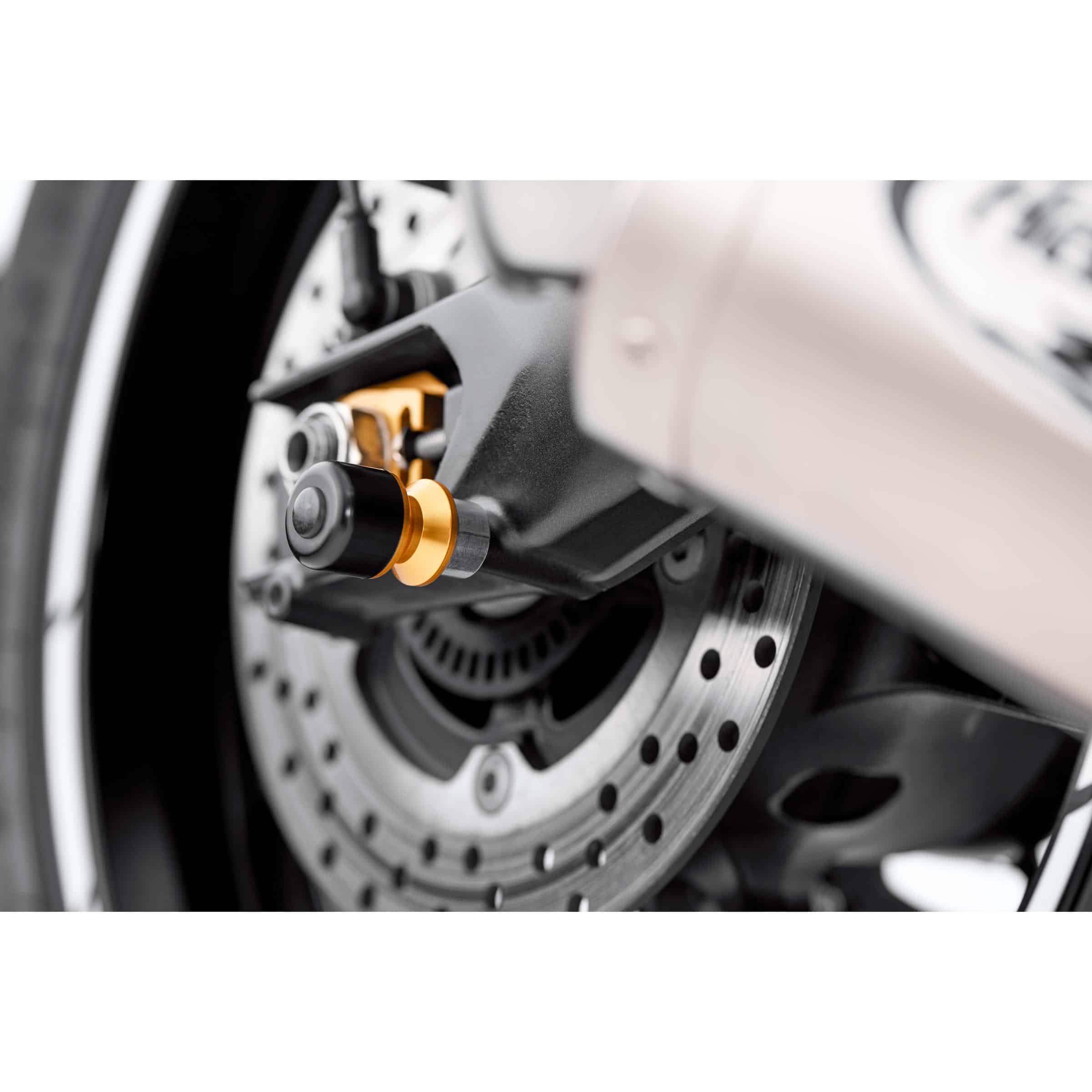 Die Sturzpadaufsätze sind speziell für die Verwendung mit gängigen Motorrad-Aufnahmerollen mit einem M6-Gewinde konzipiert. Die Kompatibilität hängt primär von den Aufnahmerollen Ihres Montageständers ab. Die meisten Sportmotorräder, Naked Bikes und Tourenmotorräder verwenden Aufnahmerollen mit diesem Gewinde.