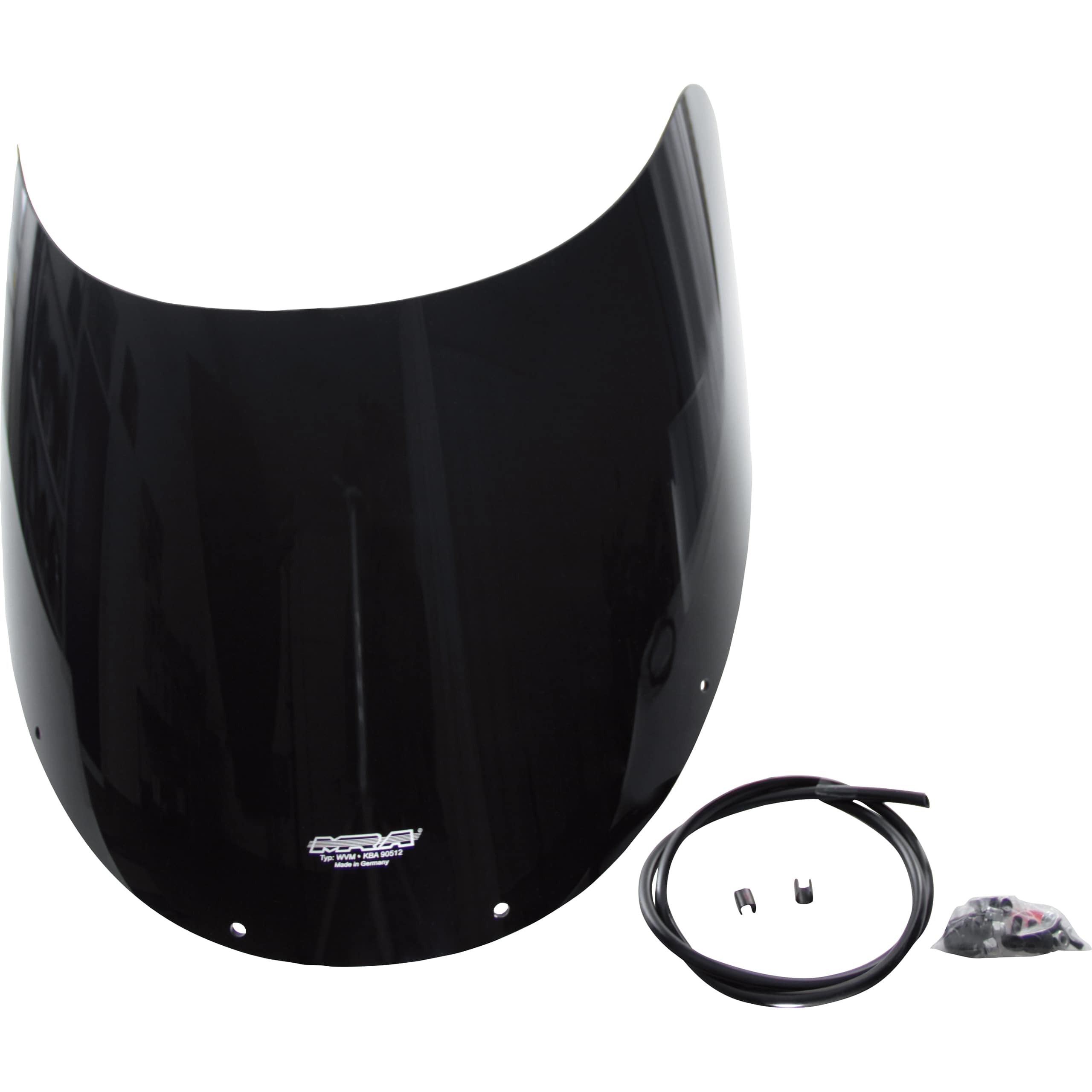 Die MRA Verkleidungsscheibe im Originalformat ist so konzipiert, dass sie die vorhandenen Befestigungspunkte und -elemente des Motorrads nutzt. In den meisten Fällen wird die Scheibe ohne zusätzliches Montagematerial geliefert, da die originalen Schrauben, Muttern und eventuell vorhandene Gummidichtungen wiederverwendet werden können. Überprüfen Sie die Produktverpackung oder die beigelegte Anleitung auf spezifische Hinweise.