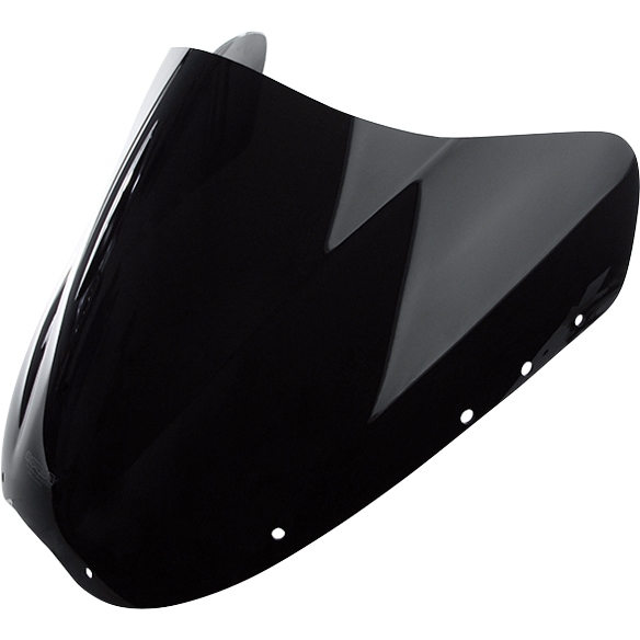 Die MRA Verkleidungsscheibe Racing R für die Yamaha FZR 1000 ist aus hochwertigem Acrylglas (PMMA) gefertigt. Dieses Material zeichnet sich durch seine hervorragende optische Klarheit, hohe Kratzfestigkeit und Widerstandsfähigkeit gegenüber Umwelteinflüssen wie UV-Strahlung und Witterung aus. Das Material ist zudem schlagzäh, was bedeutet, dass es auch bei Stößen oder kleinen Steinschlägen nicht so leicht bricht oder splittert. Die schwarze Einfärbung ist nicht nur ein optisches Highlight, sondern auch eine Funktion, die Blendung durch Gegenlicht reduzieren kann und dem Fahrer einen besseren Fokus auf die Straße ermöglicht. Die präzise Fertigung und die exakte Passform stellen sicher, dass die Scheibe ohne Modifikationen an die Original-Aufnahmen der FZR 1000 montiert werden kann. Die Kanten sind sauber und gerundet, um die Sicherheit zu erhöhen und die Optik abzurunden.