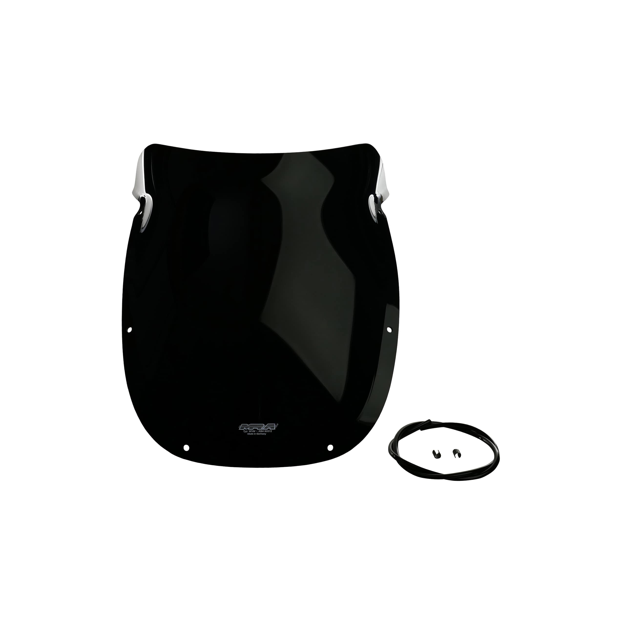 Die MRA Verkleidungsscheibe Spoiler S wird aus hochqualitativem Acrylglas gefertigt. Dieses Material zeichnet sich durch seine hohe Schlagfestigkeit, Kratzfestigkeit und Witterungsbeständigkeit aus. Die Scheiben werden im Thermoformverfahren hergestellt, was eine präzise Passform und eine gleichmäßige Dicke gewährleistet. Die schwarze Tönung ist nicht nur optisch ansprechend, sondern bietet auch einen gewissen UV-Schutz und reduziert Blendeffekte durch die Sonne.