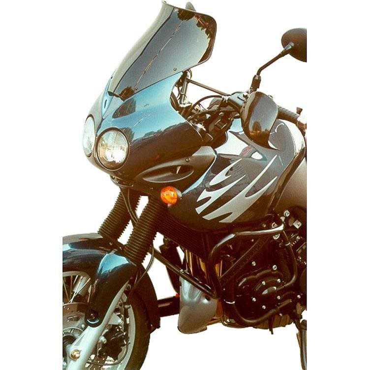 Die schwarze Tönung der MRA Tourenscheibe T bietet mehrere Vorteile. Sie reduziert die Blendung durch direkte Sonneneinstrahlung und das Scheinwerferlicht anderer Fahrzeuge, was zu einem erhöhten Sehkomfort beiträgt. Gleichzeitig verleiht sie dem Motorrad ein sportlicheres und individuelleres Aussehen, ohne die Sicht nach vorne zu beeinträchtigen.