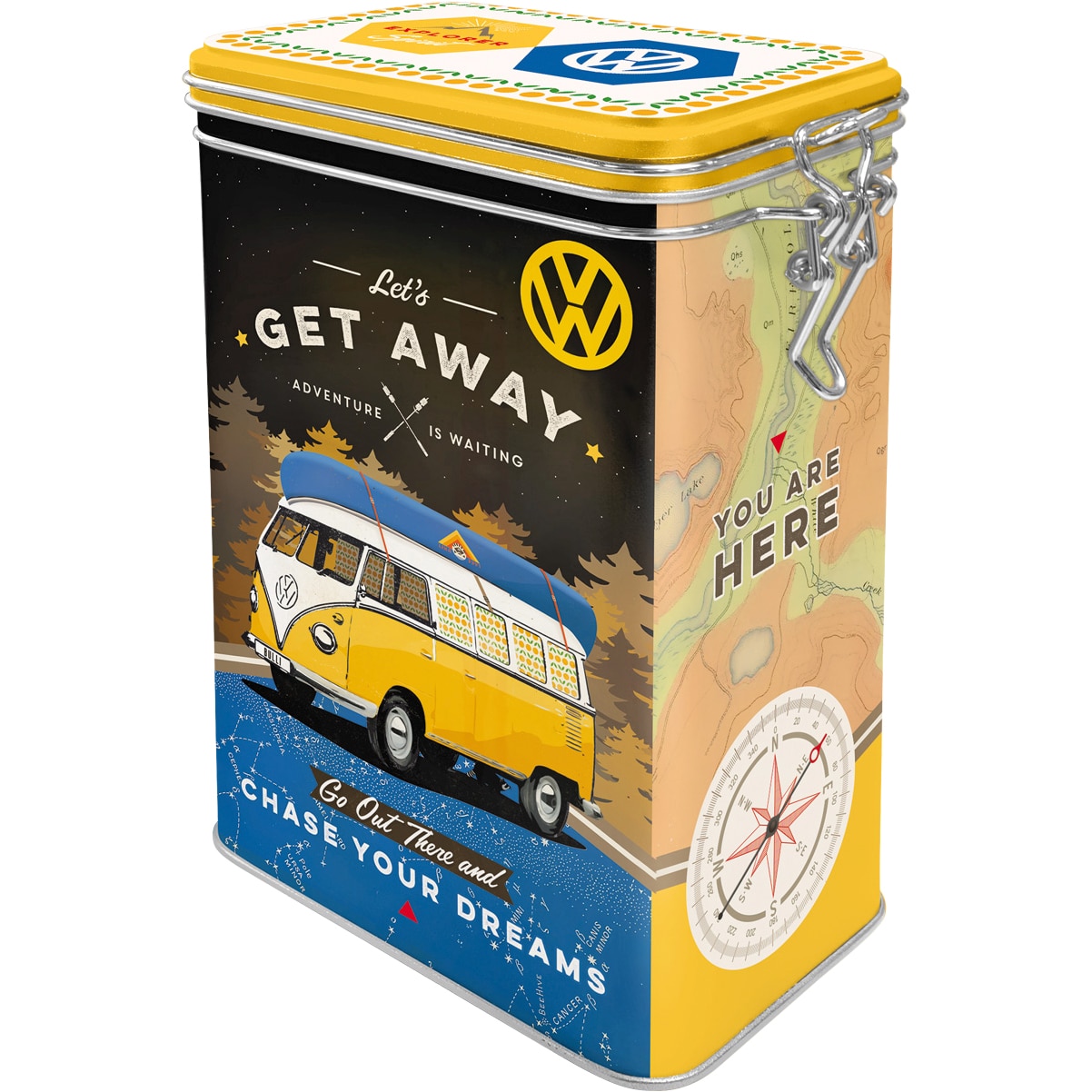 Die Nostalgic-Art Aromadose „Let’s Get Away“ zelebriert das Lebensgefühl des legendären VW Bulli. Das detailreiche Design, das an die Ära der 60er und 70er Jahre erinnert, macht diese Dose zu einem echten Hingucker. Der Slogan „Let’s Get Away“ versprüht die pure Lust auf Abenteuer und ferne Ziele und inspiriert zu neuen Ausflügen und Entdeckungsreisen. Diese Aromadose ist mehr als nur ein Behälter; sie ist ein Statement und ein Stück Kulturgeschichte, das Ihre Leidenschaft für das Reisen und den Kultbus zum Ausdruck bringt.
