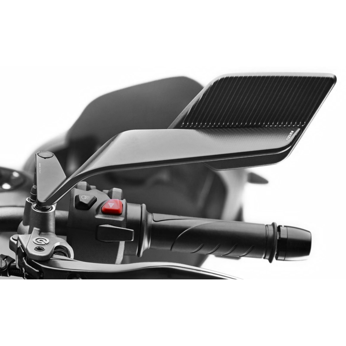 - Montageflexibilität: Da keine vormontierte Aufnahme integriert ist, können diese Spiegel an einer Vielzahl von Lenkerenden-Adaptationen oder speziellen Rizoma Spiegelhalterungen montiert werden, was eine individuelle Positionierung ermöglicht.