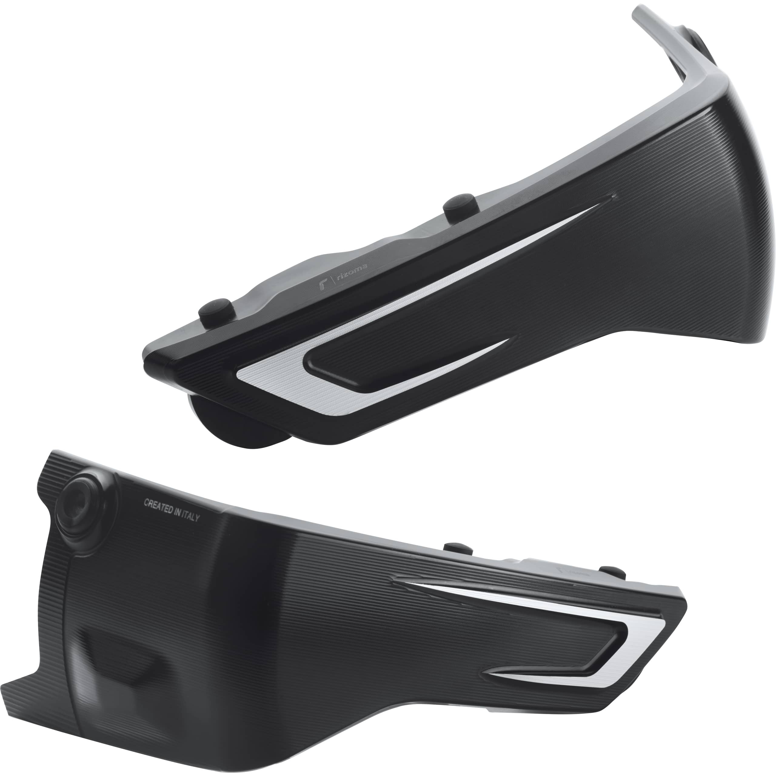 Die Vorteile liegen primär in der optischen Aufwertung und der hochwertigeren Materialverarbeitung. Rizoma Abdeckungen bieten ein exklusiveres Design und eineedlere Anmutung durch die präzise CNC-Bearbeitung und das aufwändige schwarz/silberne Finish. Zudem sind sie oft leichter und widerstandsfähiger gegenüber äußeren Einflüssen als Kunststoffteile.