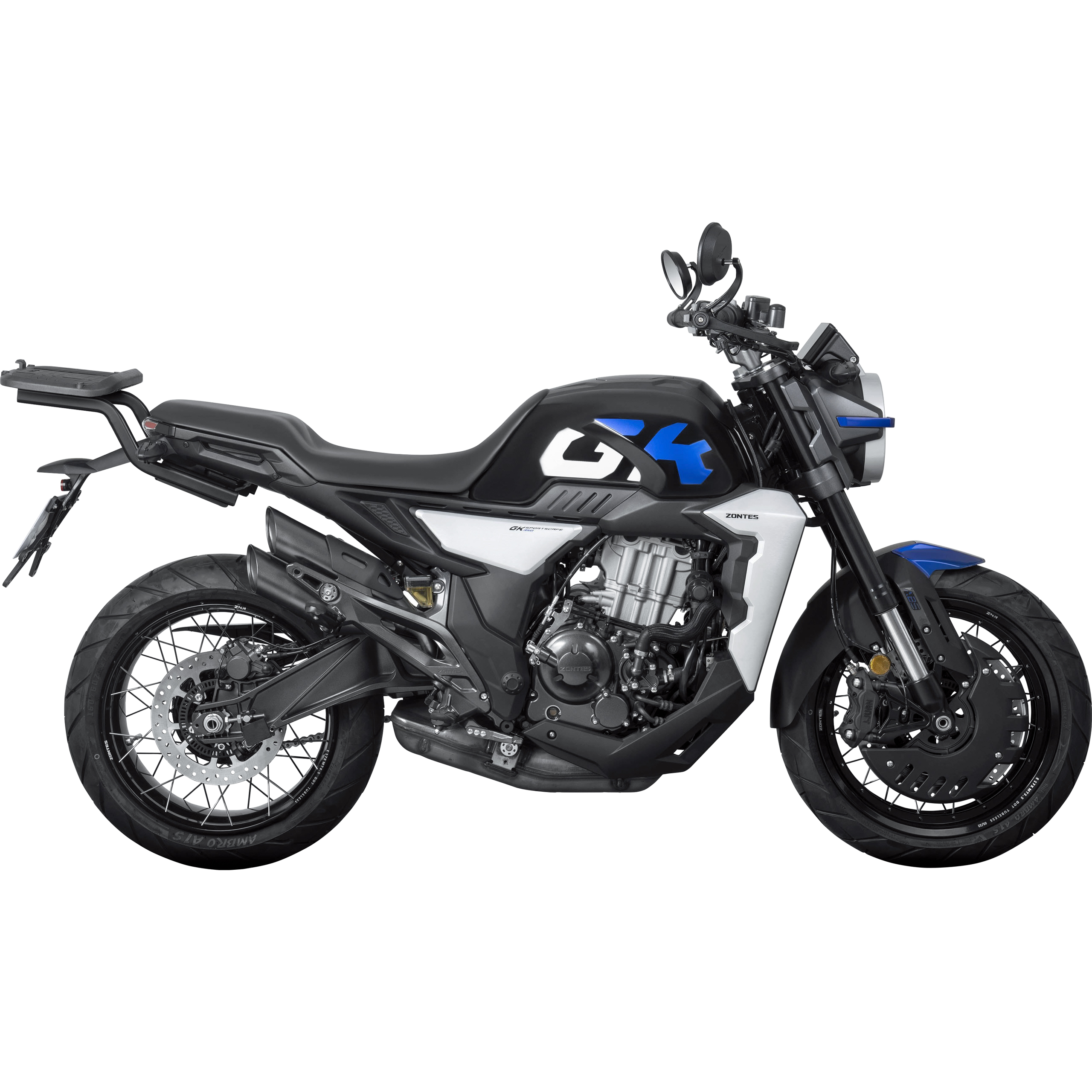 - Ästhetische Integration: Der Träger fügt sich harmonisch in das Gesamtdesign der Zontes GK 350 ein. Seine Linienführung wurde so gestaltet, dass sie die sportlichen Linien des Motorrads ergänzt, anstatt sie zu stören.