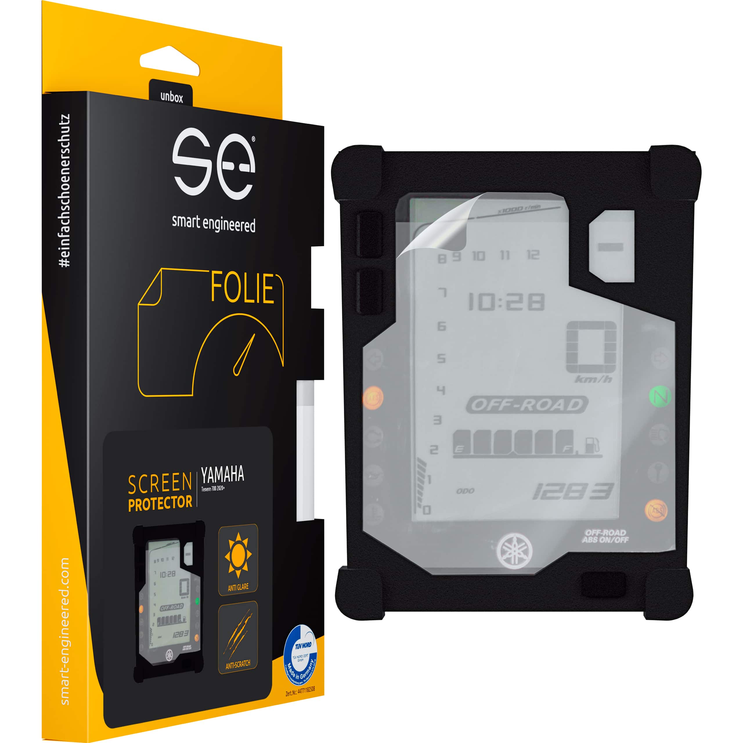 Das Kombiinstrument einer modernen Yamaha Tenere 700 ist ein komplexes und empfindliches Bauteil, das ständiger Beanspruchung ausgesetzt ist. Ob durch kleine Steinchen auf der Fahrbahn, das versehentliche Streifen mit dem Handschuh oder durch die allgemeine Abnutzung im täglichen Gebrauch – Kratzer und Schlieren sind eine ständige Bedrohung. Die Smart Engineered Cockpit-Schutzfolie bietet eine robuste Barriere gegen diese Gefahren. Sie ist hart genug, um den meisten Kratzern standzuhalten, aber flexibel genug, um sich optimal an die Konturen Ihres Displays anzupassen.