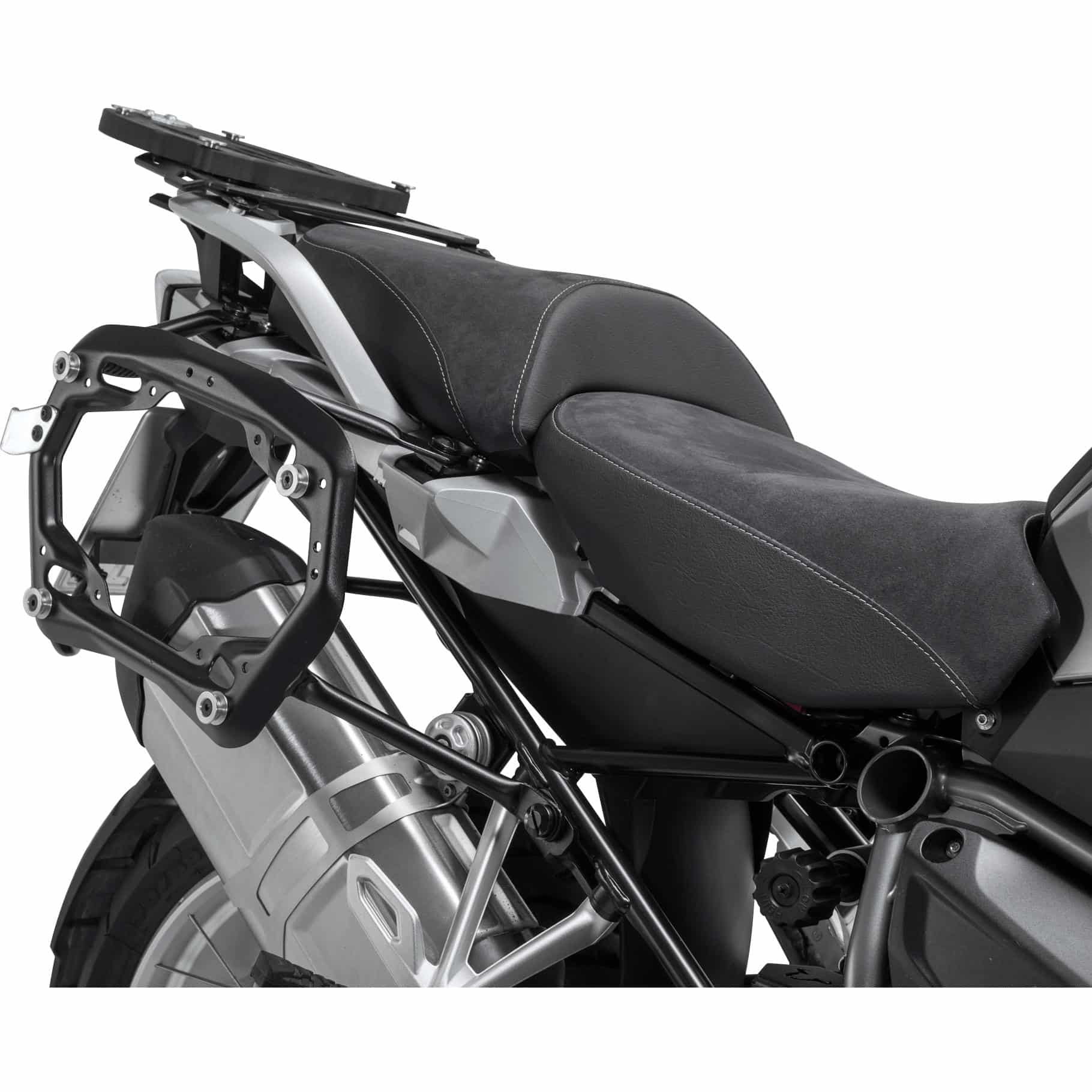 - Ästhetische Integration: Das dezente Design fügt sich harmonisch in die Optik der BMW GS Modelle ein und ermöglicht ein sauberes Erscheinungsbild, wenn keine Koffer montiert sind.