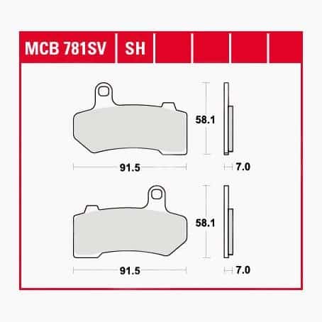 Die exakten Abmessungen der TRW Lucas Bremsbeläge MCB781SV sind 91,5 mm in der Länge, 58,1 mm in der Höhe und 7 mm in der Dicke. Diese präzisen Maße sind entscheidend für die perfekte Passform in den Bremssätteln Ihres Motorrads. Eine exakte Passform gewährleistet, dass der Bremsbelag gleichmäßig auf die Bremsscheibe trifft und die gesamte Reibfläche optimal genutzt wird. Dies minimiert das Risiko von Ungleichmäßigkeiten im Verschleiß, Geräuschbildung und sorgt für eine direkte Kraftübertragung vom Bremshebel auf die Bremse. Die Kalibrierung der Beläge hinsichtlich ihrer Dicke ist ebenfalls ein wichtiger Faktor, da sie in Verbindung mit dem Kolbenrückzug im Bremssattel die richtige Funktion des Bremssystems sicherstellt. Die Sorgfalt bei der Herstellung der exakten Konturen und Kanten verhindert zudem unerwünschte Reibung oder Anschlagen am Bremsscheibenschutz oder anderen Komponenten des Bremssattels.