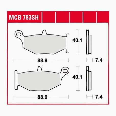 Die spezifische Kompatibilität mit Ihrem Motorradmodell entnehmen Sie bitte der beiliegenden ABE (Allgemeine Betriebserlaubnis) oder konsultieren Sie die TRW Lucas Anwendungshilfe. Die exakten Maße 88,9 x 40,1 x 7,4 mm sind entscheidend für die Passform, daher sollten Sie diese stets mit den Abmessungen Ihrer aktuell verbauten Bremsbeläge abgleichen.
