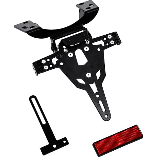 | Lieferumfang | Kennzeichenhalterung, Montagematerial (Schrauben, Muttern, Unterlegscheiben aus rostfreiem Edelstahl), integrierte Kennzeichenbeleuchtung, ggf. separate Blinkerhalterungen und Montageanleitung. Beiliegendes Gutachten (ABE/Teilegutachten) zur legalen Nutzung im Straßenverkehr. |