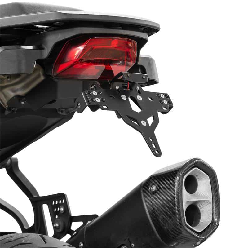 - Verbessertes Erscheinungsbild: Verleiht dem Heck Deiner Pan America einen sportlicheren und aufgeräumteren Look, indem er das serienmäßige Kennzeichen an eine aerodynamischere und ästhetisch ansprechendere Position verlegt.