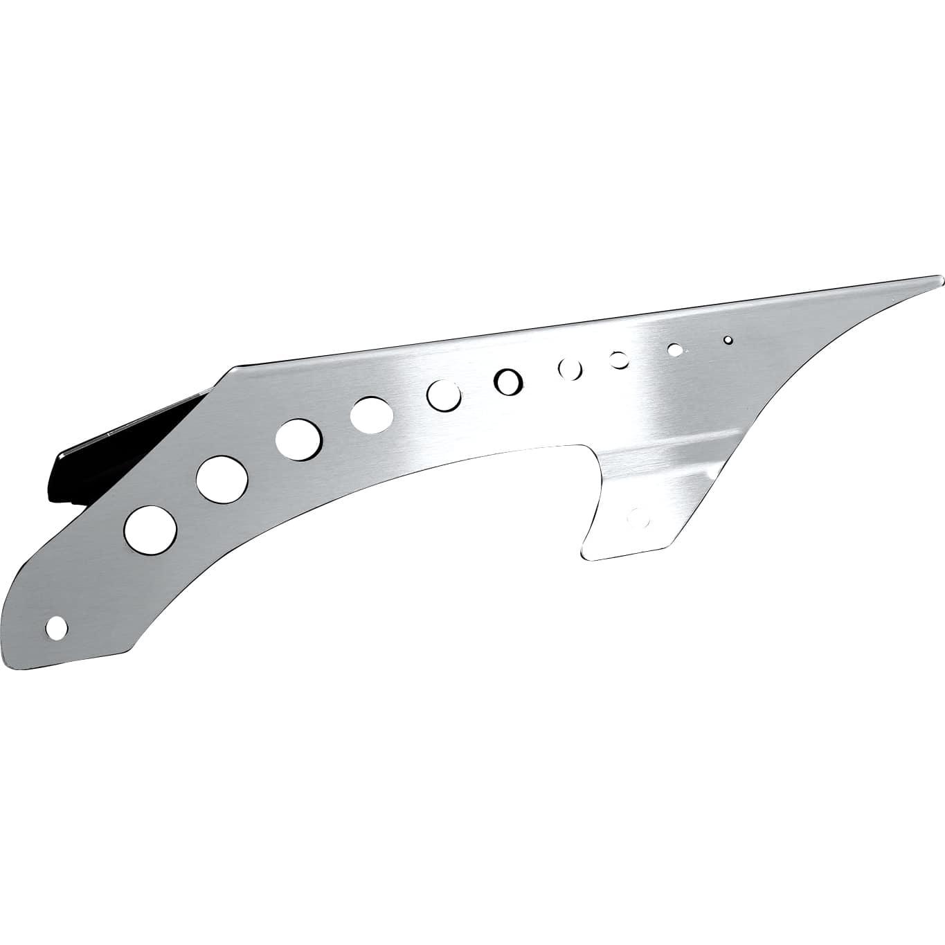 Der Zieger Kettenschutz wird aus einem hochfesten Edelstahl gefertigt. Dieses Material ist bekannt für seine außergewöhnliche Härte und Zugfestigkeit, kombiniert mit exzellenter Resistenz gegenüber Korrosion und Oxidation. Die Oberfläche ist sorgfältig poliert, um eine glatte und reflektierende Silberoptik zu erzielen, die den hohen Qualitätsanspruch widerspiegelt. Die Dicke des verwendeten Edelstahlblechs ist so gewählt, dass eine hohe Stabilität gewährleistet ist, ohne das Gewicht unnötig zu erhöhen. Jede Kante ist gratfrei verarbeitet, um die Sicherheit bei der Montage und im Betrieb weiter zu erhöhen.
