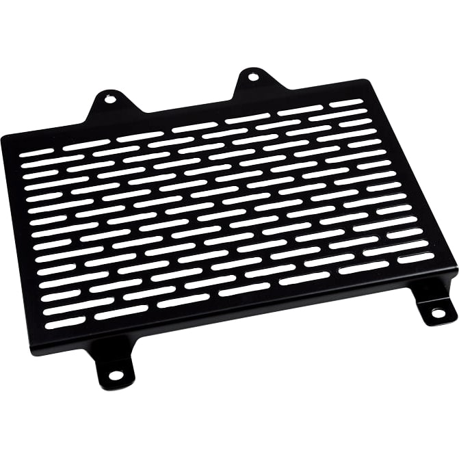 | Oberflächenbeschaffenheit | Feinmaschiges Gitterdesign. Die Maschenweite ist präzise kalibriert, um maximalen Schutz vor größeren Partikeln wie Steinen und Insekten zu bieten, während sie gleichzeitig eine ungehinderte Luftzirkulation zum Kühler ermöglicht. Die Oberfläche ist mattschwarz pulverbeschichtet für eine dezente und sportliche Optik. |