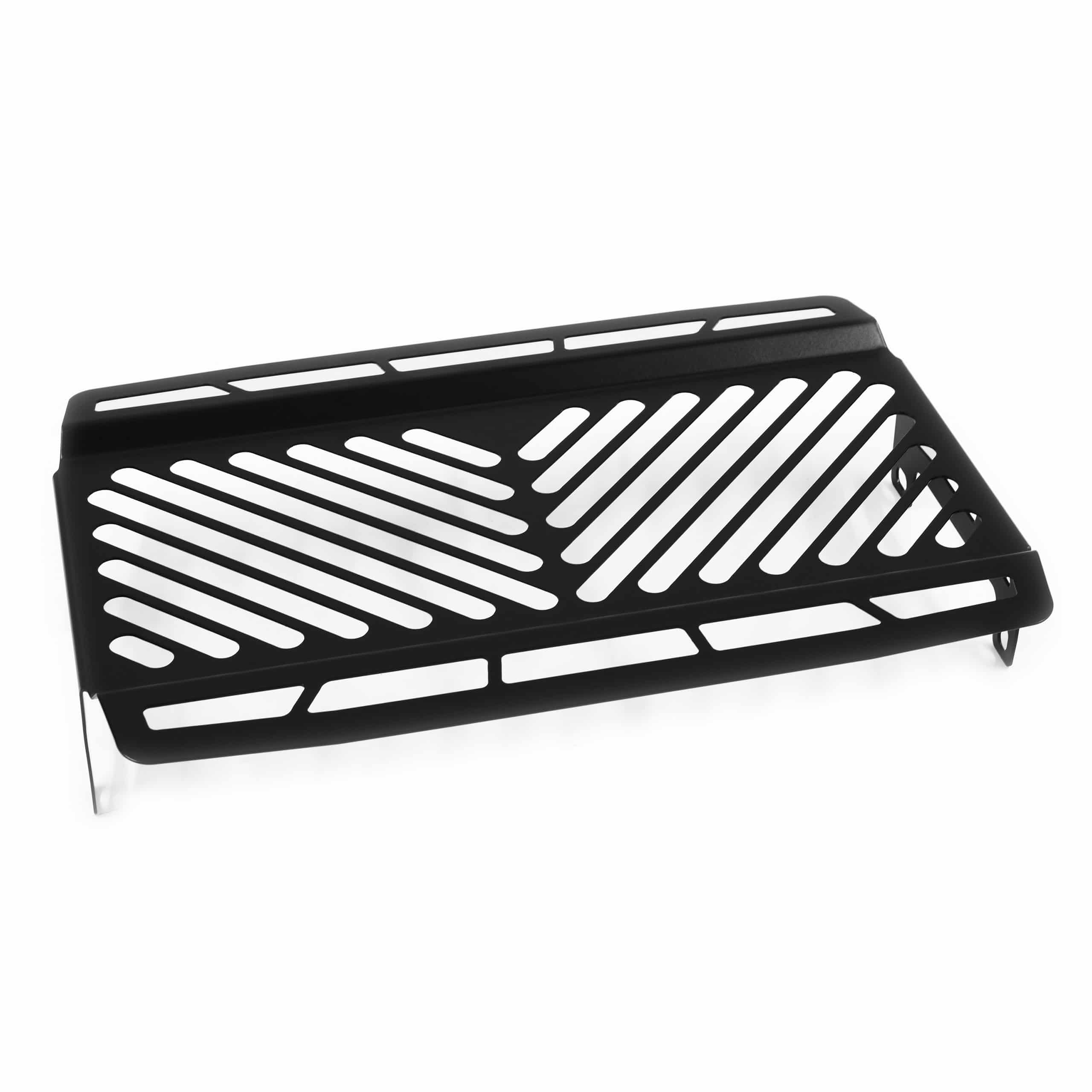Die Kühlerabdeckung besteht in der Regel aus einer robusten Aluminiumlegierung oder Edelstahl, die für ihre Langlebigkeit und Korrosionsbeständigkeit bekannt sind. Die schwarze Oberfläche ist pulverbeschichtet, was zusätzlichen Schutz und eine edle Optik bietet.