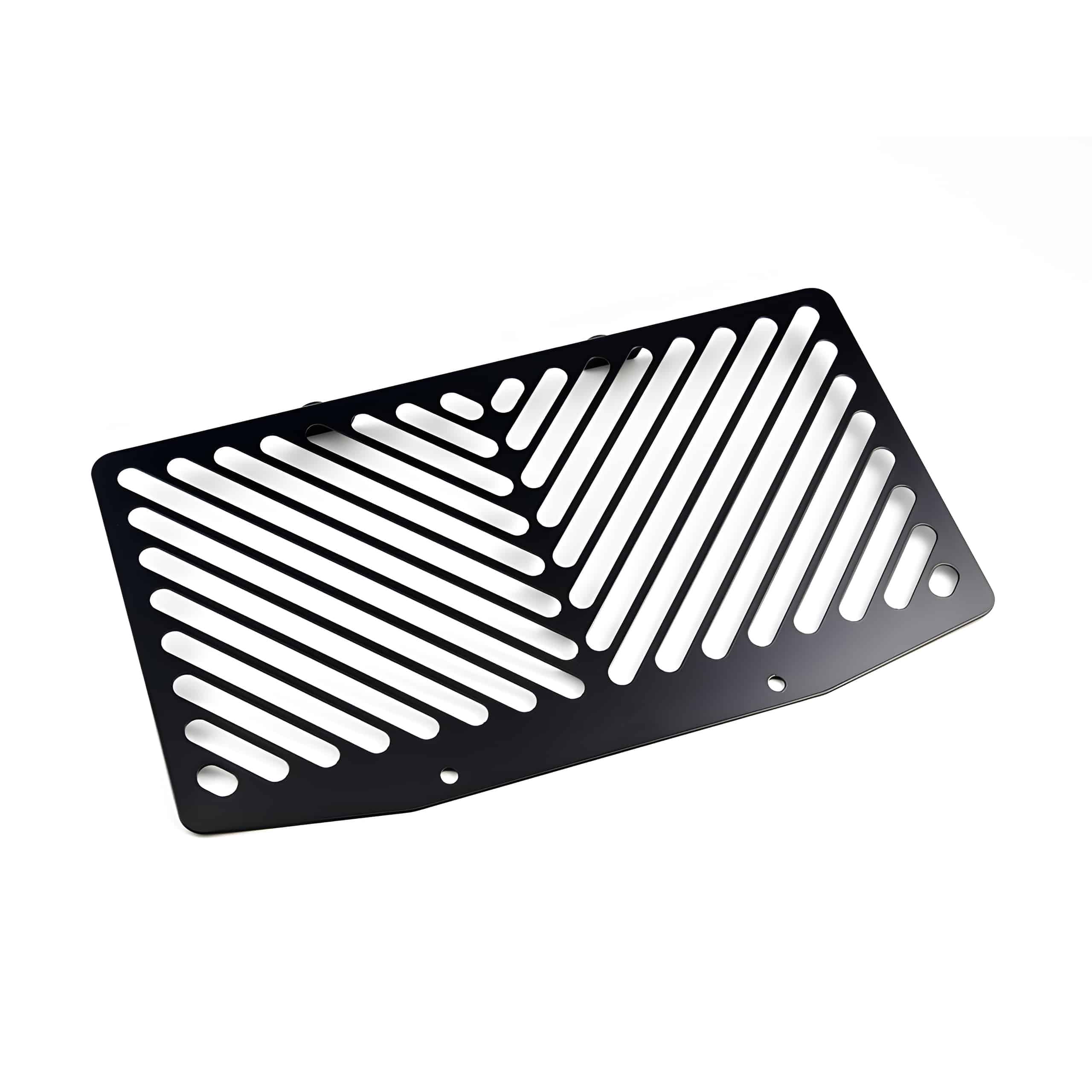 Die Kühlerabdeckung besteht in der Regel aus einem robusten und korrosionsbeständigen Material wie Edelstahl oder Aluminium, das anschließend mit einer langlebigen, mattschwarzen Pulverbeschichtung versehen wird.