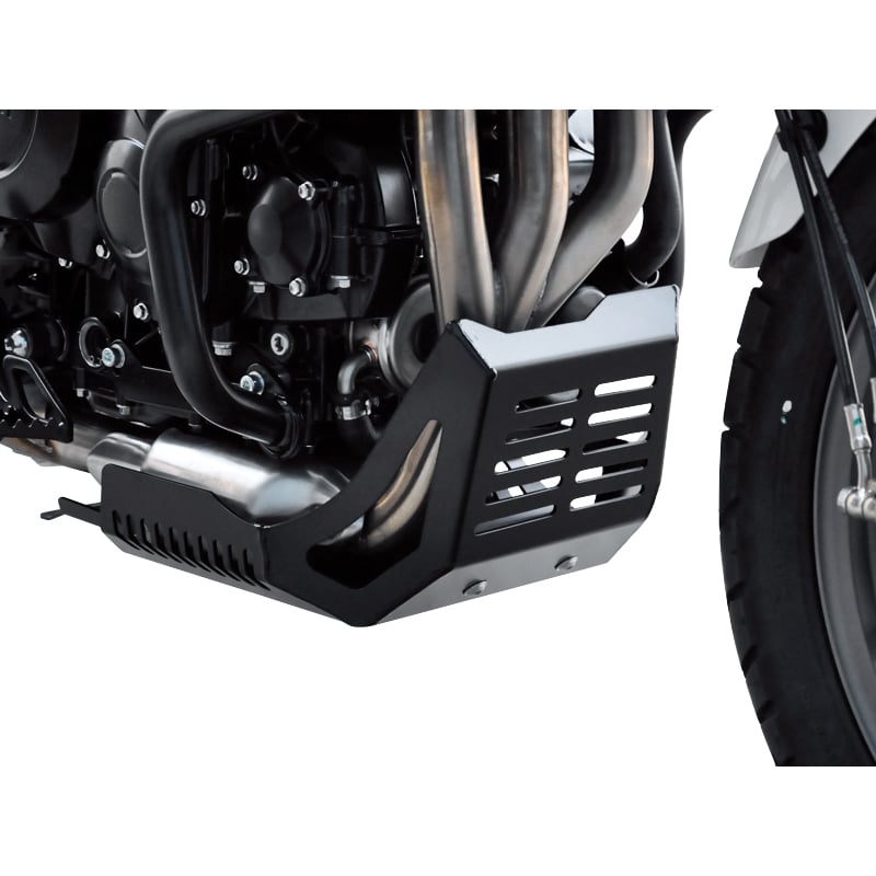Der schwarze, pulverbeschichtete Motorschutz fügt sich elegant in das sportliche Design der Triumph Tiger 800 ein. Er verleiht dem Motorrad einen robusteren und gleichzeitig individuelleren Look, der die Offroad-Fähigkeiten und den Abenteuercharakter des Bikes unterstreicht.