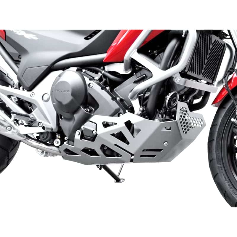 Der Motorschutz wurde so konstruiert, dass er einen optimalen Kompromiss zwischen maximalem Schutz und minimaler Beeinträchtigung der Bodenfreiheit darstellt. Die Aussparungen und die Formgebung sind auf die spezifische Konstruktion der Honda NC 700/750 S/X abgestimmt, sodass die originale Bodenfreiheit weitestgehend erhalten bleibt.